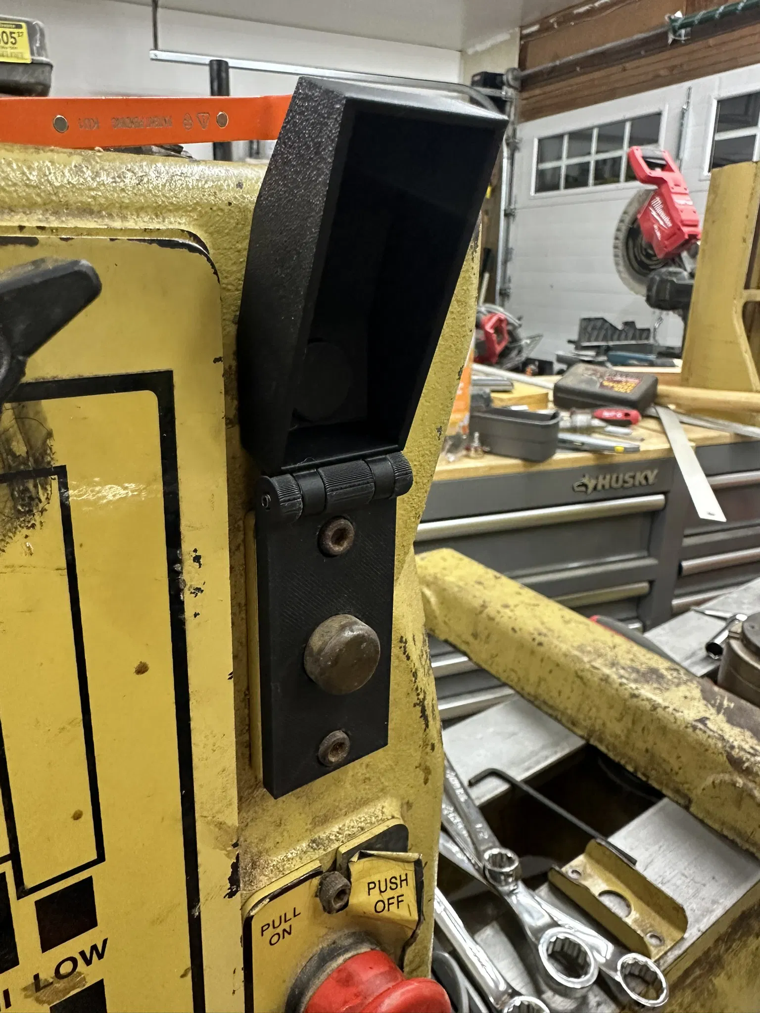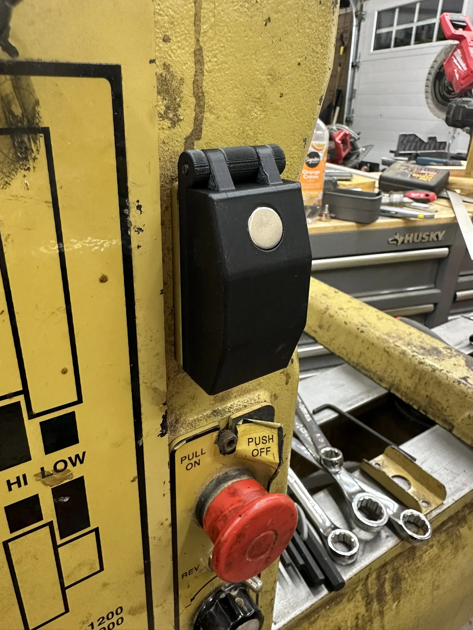 Nắp che đơn giản cho spindle lock của Powermatic 3520A, giúp tránh gạt/khóa trục chính ngoài ý muốn khi vận hành. Khuyến nghị in 100% infill, bật supports, dùng lại vít zin, M3x30 và nam châm 3x12mm.