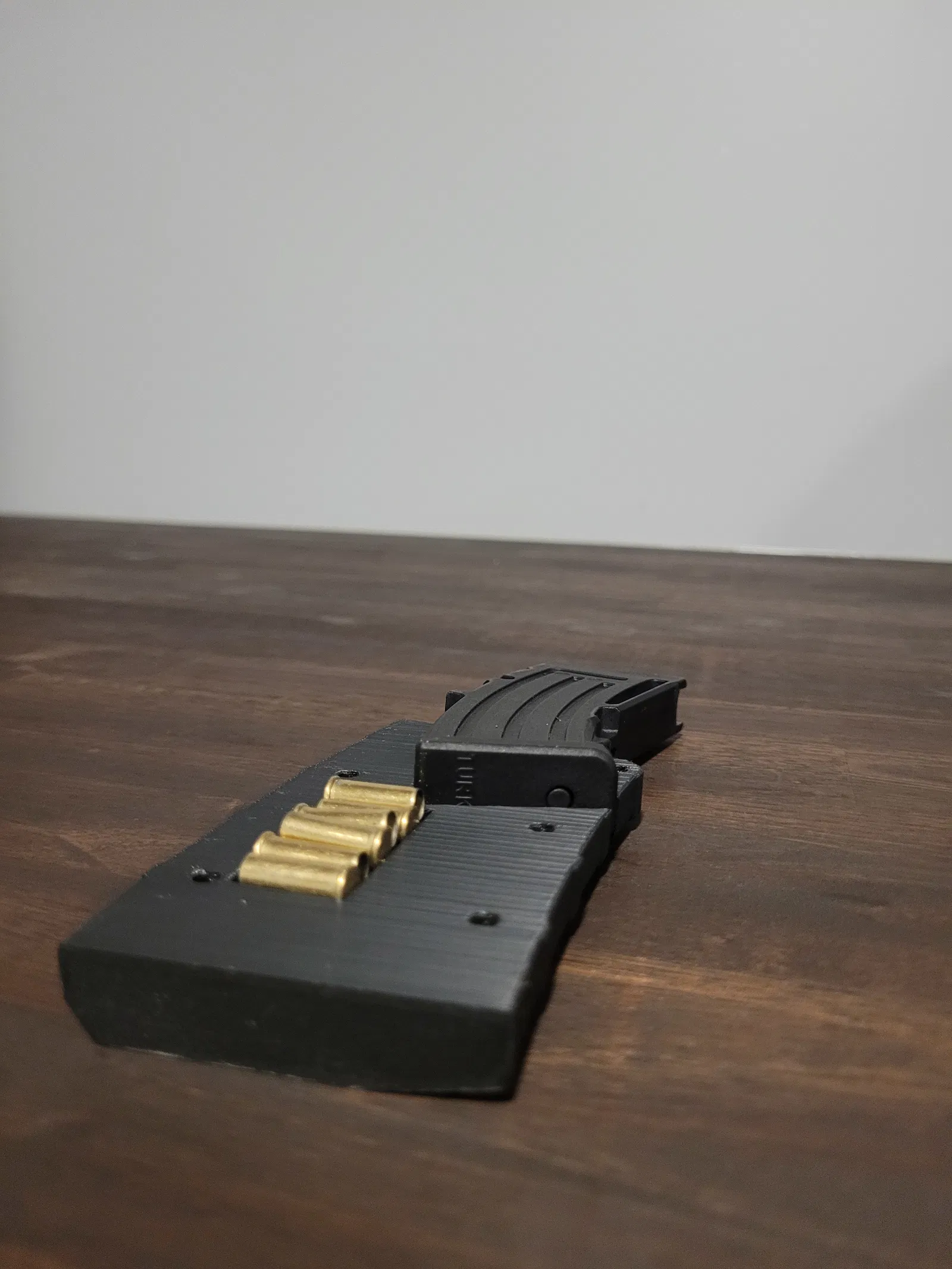 Đặt nửa còn lại của ốp lên trên magazine/vỏ đạn, rồi ấn mạnh cho khớp vào