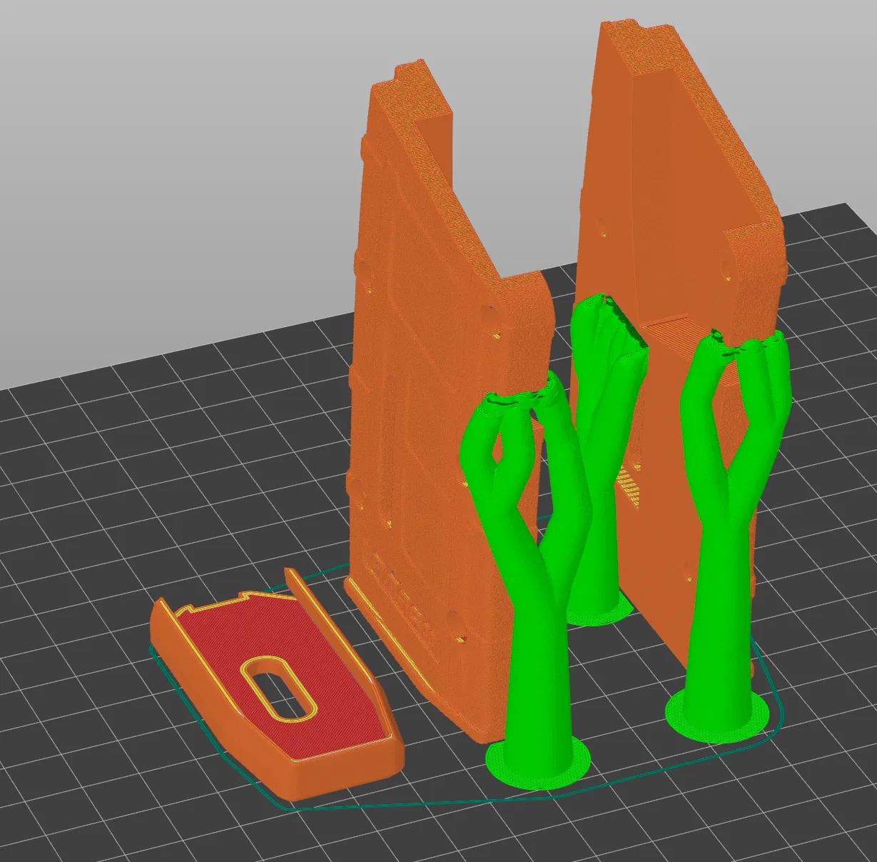 Layer height 0.1 mm để lên chi tiết, nozzle 0.4mm, fuzzy skin, cần supports cho các phần overhang ở mũi (toe) của magazine và phần ống chứa vỏ đạn. Phần đế không cần supports, nhưng có thêm cũng không sao. Infill 15% là ổn. Muốn nặng tay hơn thì tăng infill theo ý.