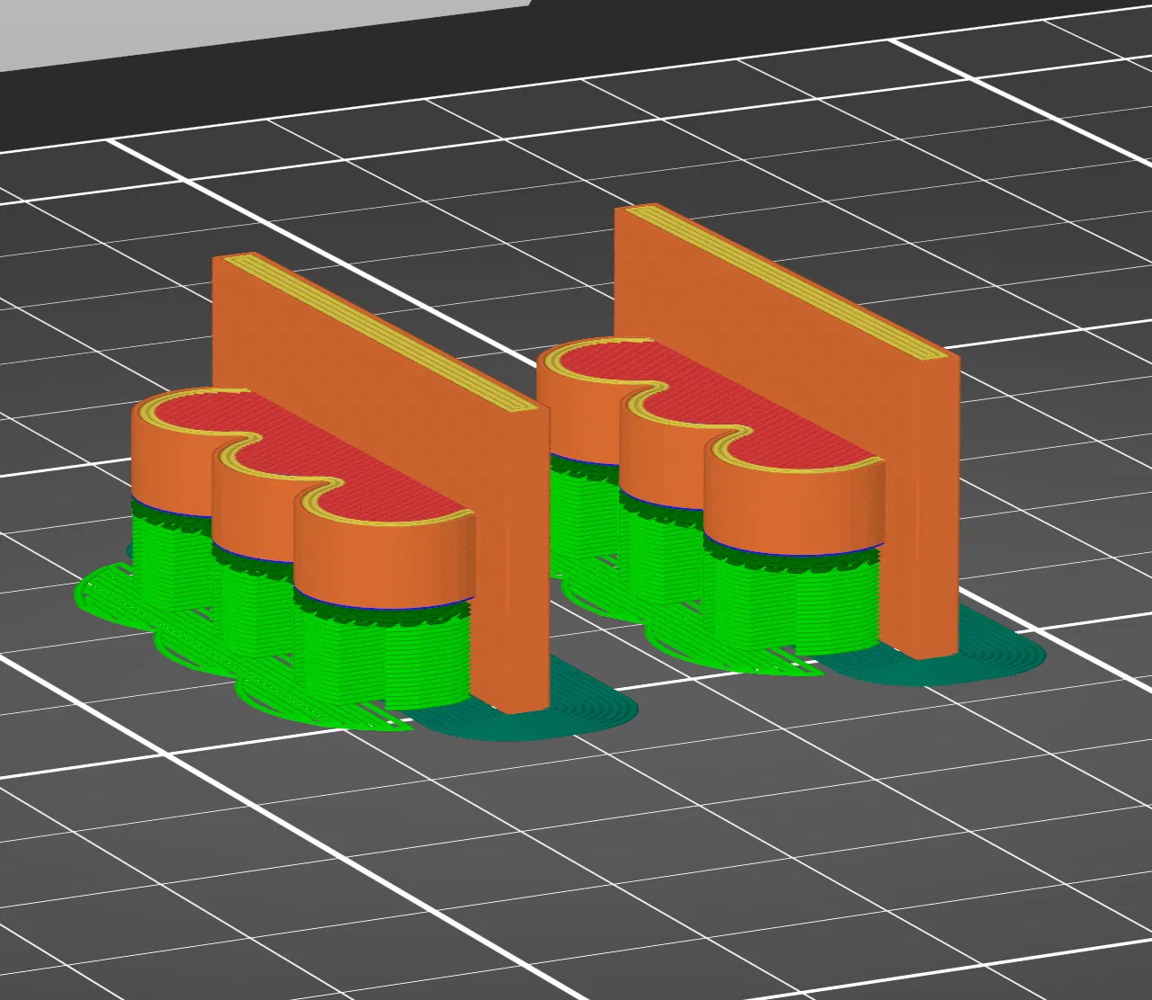In 2 cái (mỗi bên một cái). Mình dùng layer height rất nhỏ 0.10, nhưng bạn cứ chọn thông số nào hợp máy là được. Cần supports. Mình dùng Sunlu silver silk PLA. Màu vàng hoặc màu brass có thể sẽ hợp hơn. Hoặc bạn dùng màu nào tùy thích để hợp với “furniture” (đồ/ốp) của bạn.