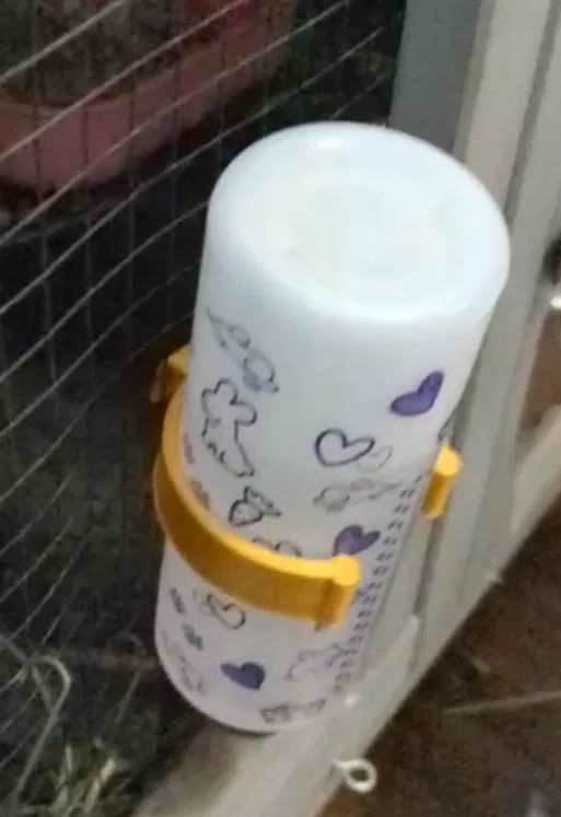Bracket in 3D giúp gắn bình nước đường kính 2" lên lồng thỏ/thú nhỏ dùng lưới hardware cloth ô 1/2". Dễ dùng hơn loại wire bracket trước đây; khuyến nghị in bằng filament PETG.