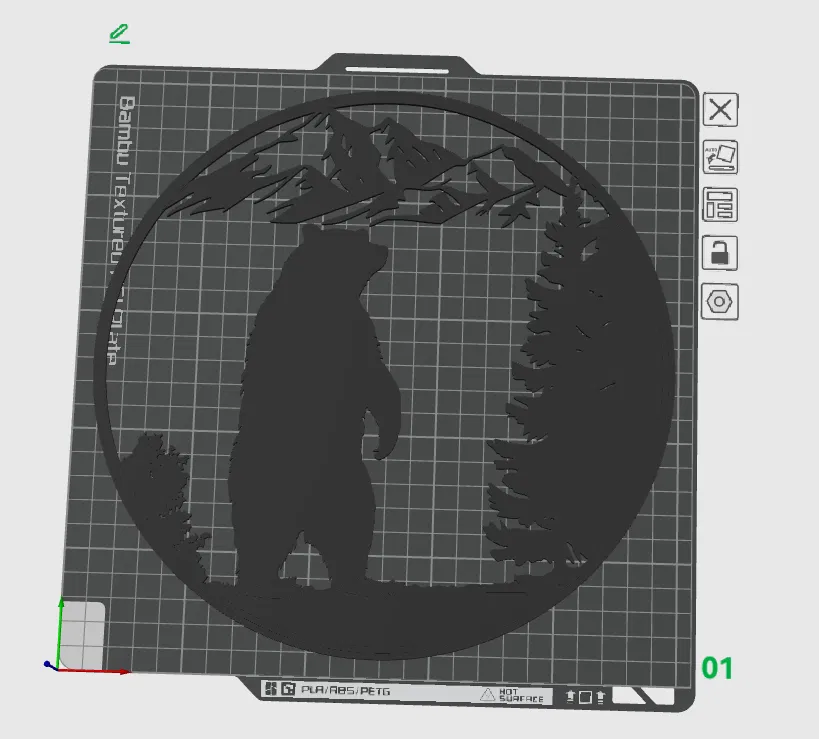 Mẫu 3D silhouette gấu mạnh mẽ, lấy cảm hứng từ thiên nhiên hoang dã, tượng trưng cho sức mạnh và sự điềm tĩnh. Kích thước 241×241 mm, dày 2 mm; khi gỡ khỏi print bed nhớ thao tác nhẹ tay.