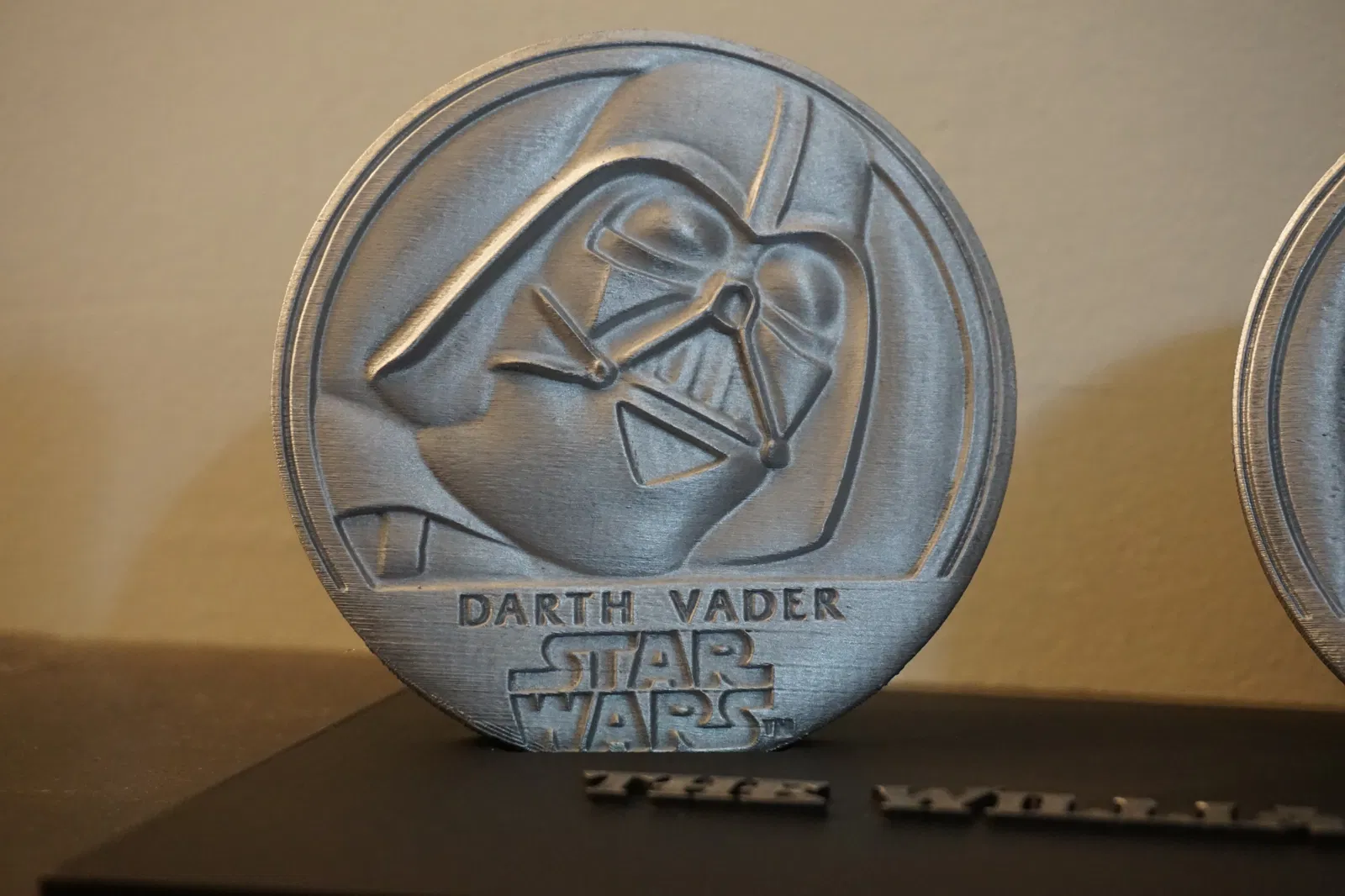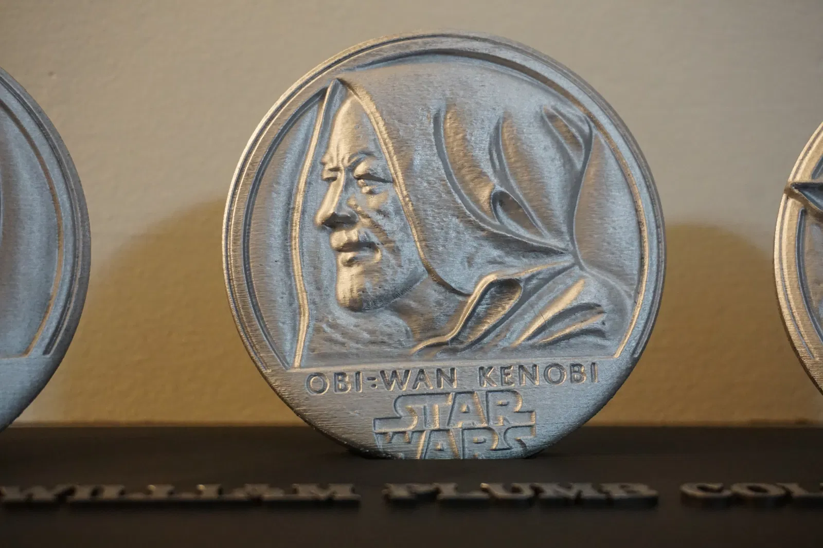 Đây là bản replica của một bộ medallion do Lawrence Noble thực hiện, và ông đã tặng cho William Plumb (một nhà sưu tầm nghệ thuật sci-fi nổi tiếng). “Năm 1995, nhà điêu khắc Lawrence Noble tạo ra các medallion khắc họa nhân vật trong bộ ba Star Wars gốc của George Lucas. Bộ này gồm Yoda (Frank Oz), Darth Vader (David Prowse) và Obi-Wan Kenobi (Alec Guiness), kèm tên nhân vật và logo tiêu đề Star Wars ở một mặt; mặt sau có thông tin bản quyền của Noble Studio và Lucasfilm. Kích thước: (mỗi cái) 4" x 4" x 0.5" (10.25 cm x 10.25 cm x 1.5 cm)
