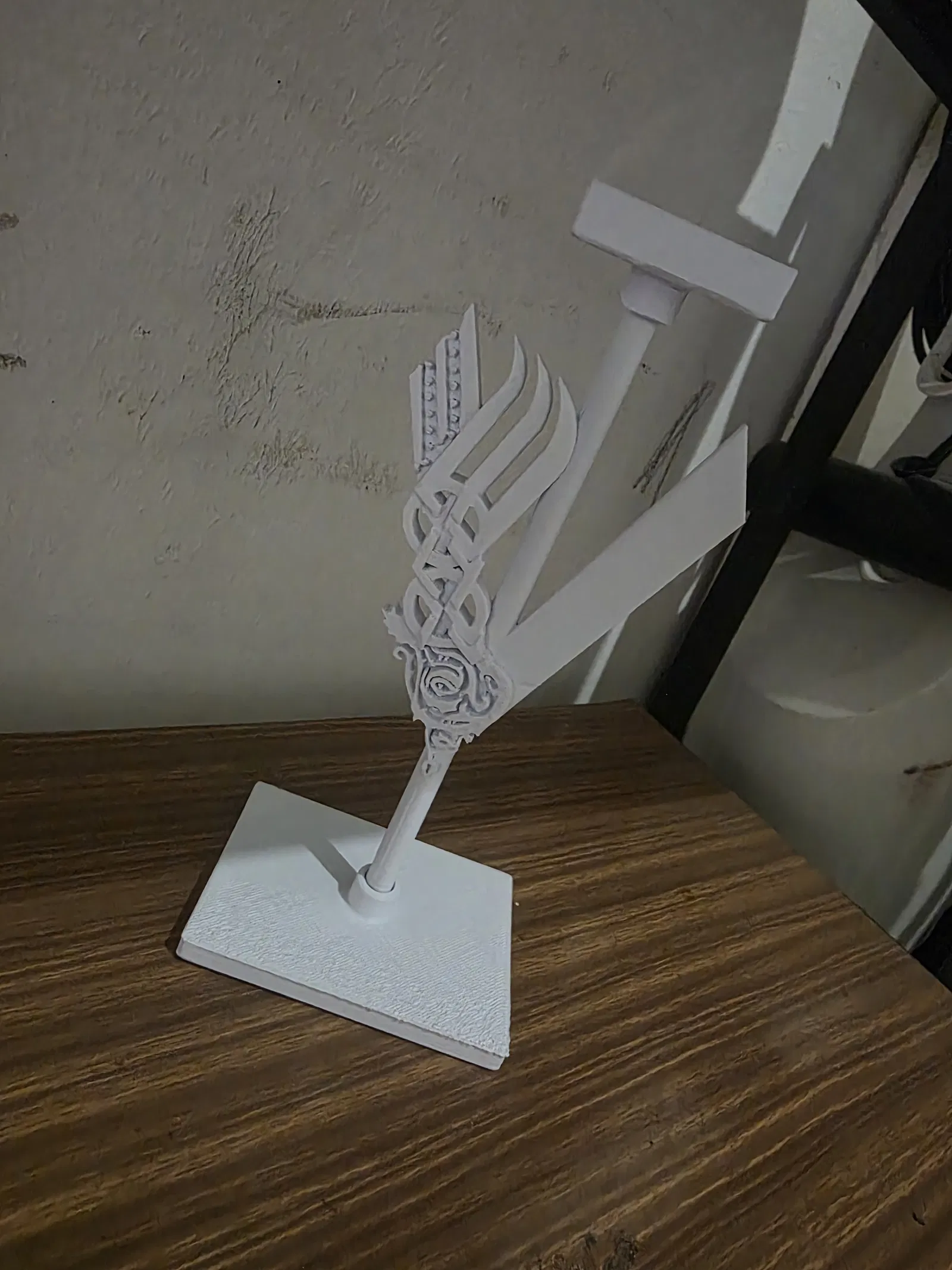 Kết hợp vẻ đẹp huyền thoại của thần thoại Bắc Âu với tính tiện dụng cho góc gaming hoặc bàn làm việc của bạn. Mẫu giá đỡ tai nghe/joystick này không chỉ là một cái đế, mà còn là một món decor nghệ thuật với hoạ tiết đan bện Celtic, một hoa văn trung tâm và đôi cánh cách điệu.