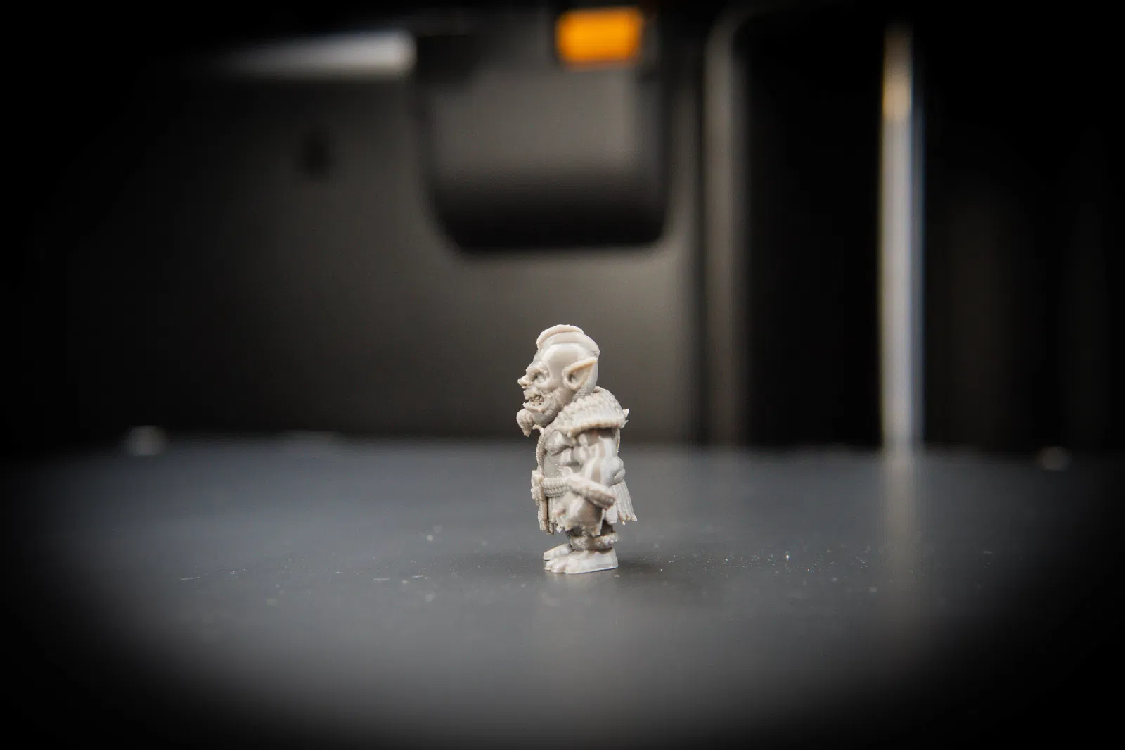 Mô hình miniature Orc Shaman. Dáng tổng thể mạnh mẽ, nhiều chi tiết nghi lễ và đường nét dày, rất hợp để chơi tabletop hoặc trưng bày.