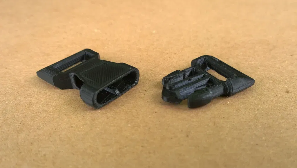 Mẫu khóa bấm kiểu side-release/parachute dùng cho dây đai (webbing) bản 3/4 inch. Khuyến nghị in có support ở mọi vị trí, nhất là phần cái của khóa, để ra chi tiết chắc và khớp tốt.