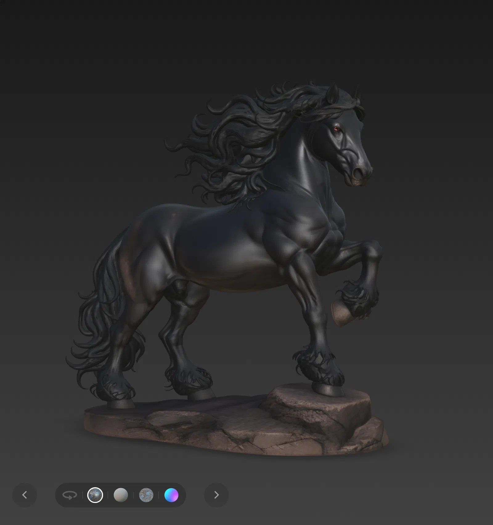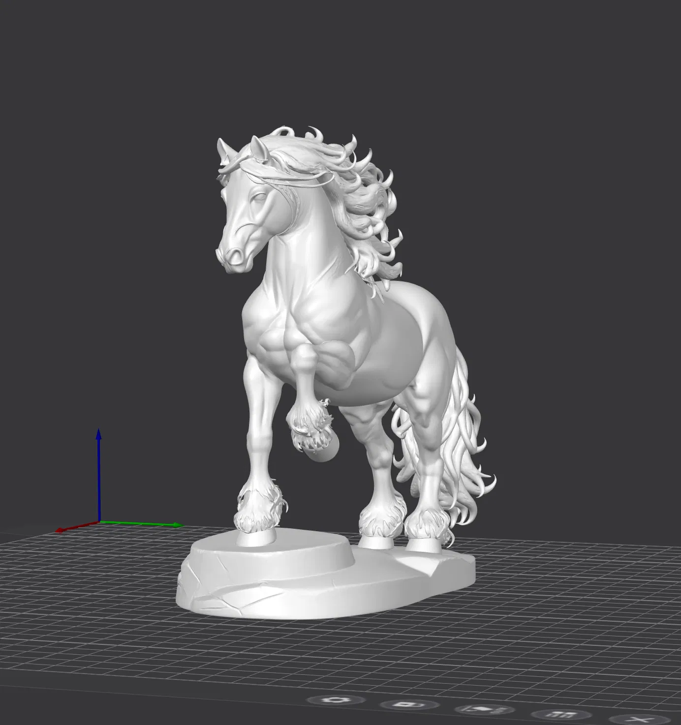 Mẫu tượng Ngựa Frisone (Frisone Horse) dáng đứng năng động, tôn lên vẻ mạnh mẽ và thanh thoát. Phù hợp làm decor cho nhà hay văn phòng. Nên in độ phân giải cao và dùng vật liệu màu tối để nổi chi tiết.
