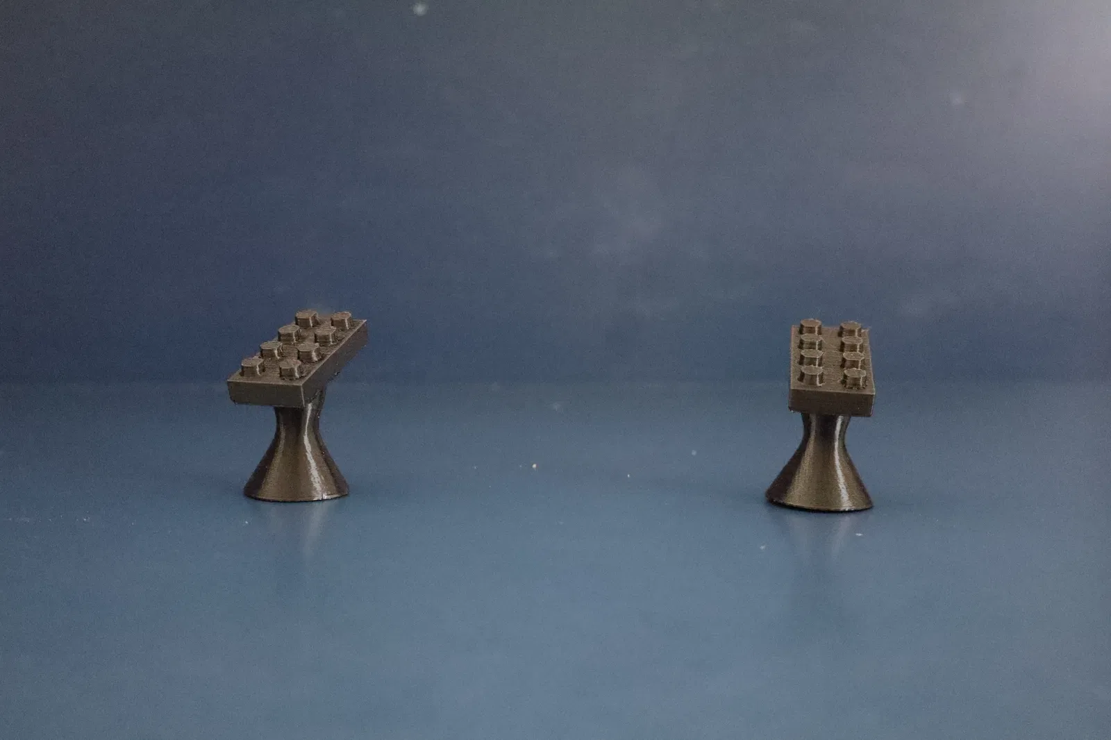 Chân trưng bày xe LEGO Speed Champions dùng được cho đa số xe LEGO. Gợi ý kẹp dưới mỗi khối gắn bánh xe, hoặc thử vị trí khác để đổi kiểu nhìn. File .gcode được để trong .zip do lỗi nhập weight trên Printables.