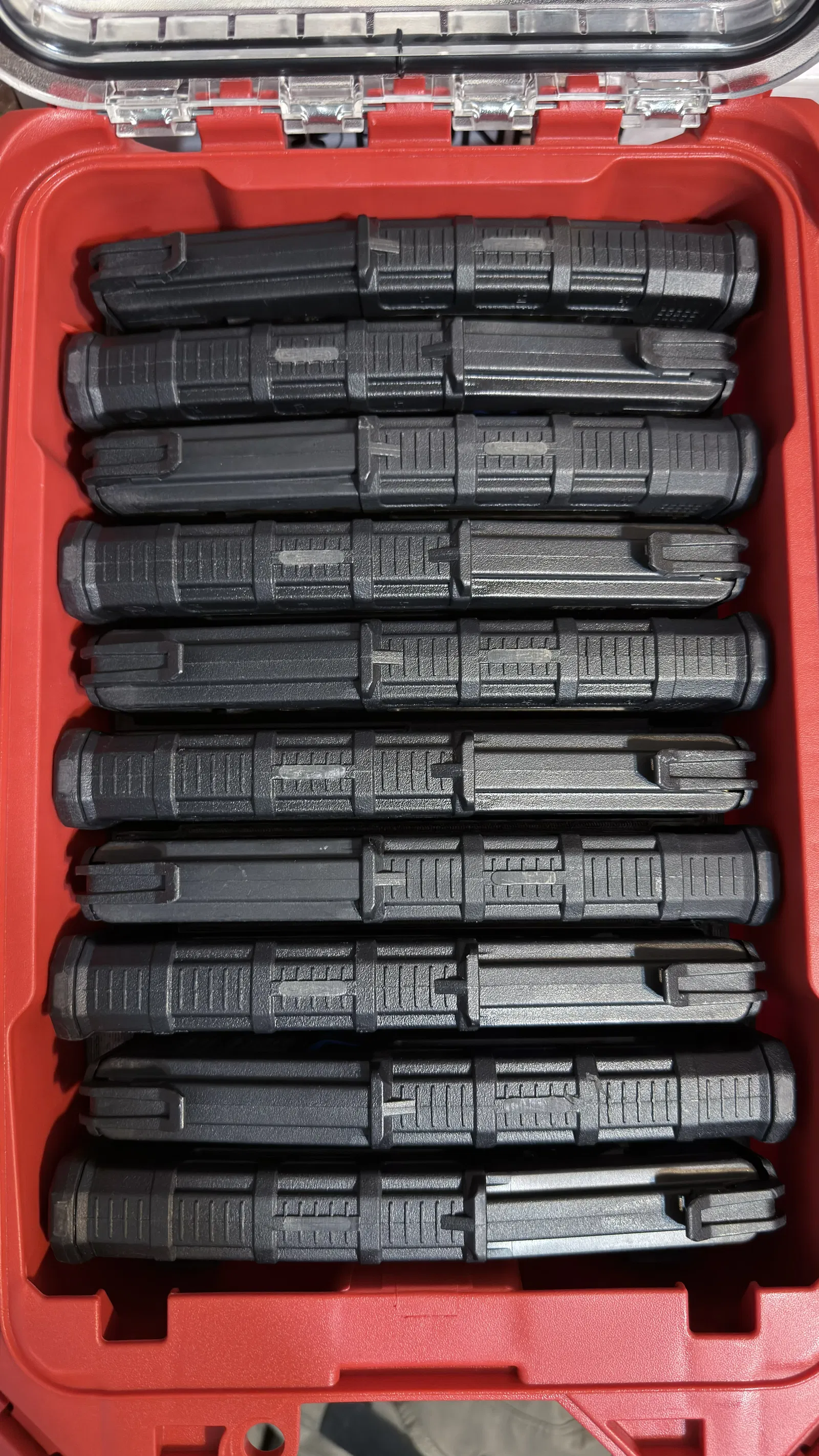 Bộ insert cho Milwaukee Packout Small Parts Organizer 48-22-8435, thiết kế để vừa AR15 mags. Có bản P-Mag 10 băng, bản trộn 4x10 + 8x30, và bản STANAG 10 băng; có 2 băng đặt lệch để dễ lấy ra.
