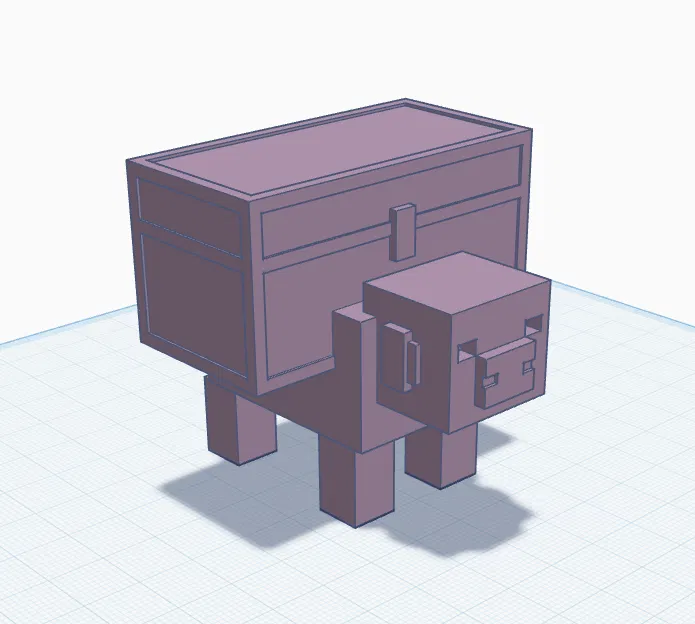 Mẫu Minecraft Dungeons Pig with Chest (còn gọi là Piggy Bank). Thiết kế con heo có gắn rương theo phong cách Minecraft, phù hợp để in 3D làm đồ trang trí hoặc heo đất. Khuyến nghị in kèm supports.