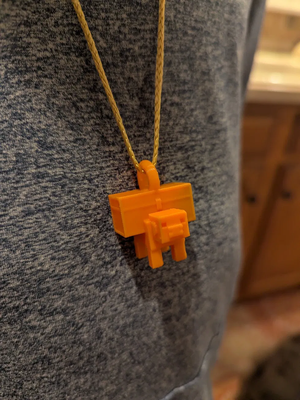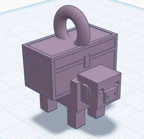 Mẫu mặt dây chuyền con heo trong Minecraft Dungeons, có chiếc rương trên lưng (Piggy Bank). Phù hợp làm phụ kiện/đeo cổ. Khi in 3D, nhớ bật supports để ra chi tiết đẹp.
