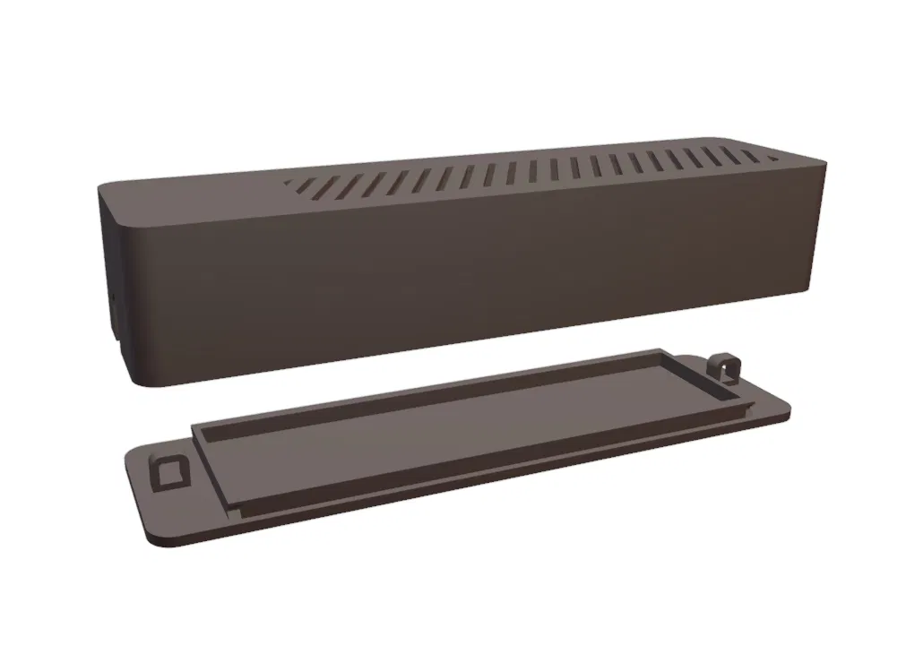 Mẫu hộp driver nguồn LED bản lớn, dùng cho bộ nguồn 12V cho đèn LED neon. Thiết kế theo kích thước power supply 40×33×158 mm, có sẵn file .STL và .BLEND để in 3D và chỉnh sửa.