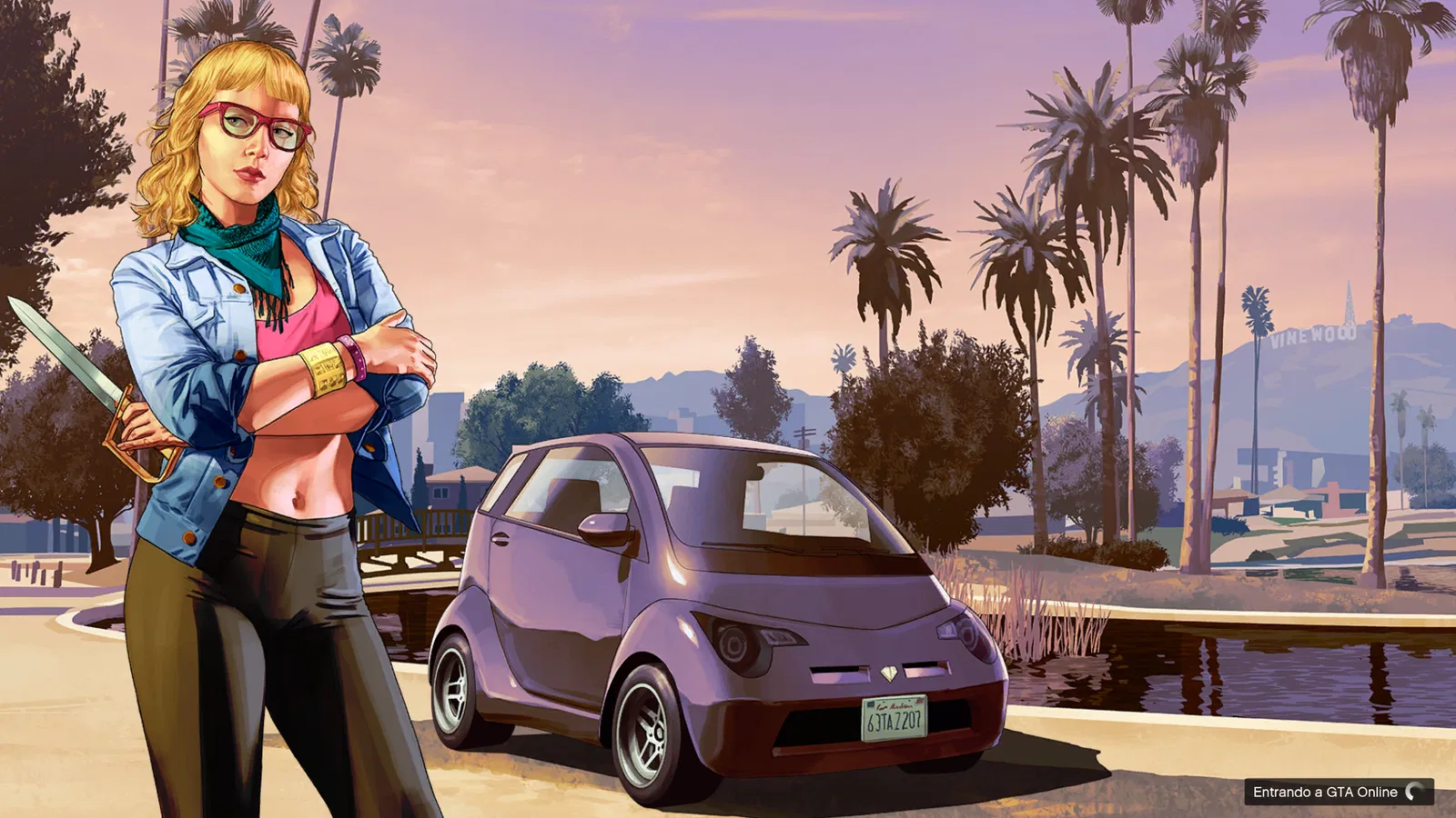 Mô hình nhân vật nữ từ màn hình khởi động GTA 5 Online. Tượng figurine cao 10 cm, phù hợp để in 3D làm đồ trưng bày hoặc sưu tầm cho fan GTA V.