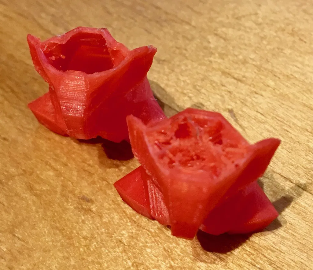Cảm ơn Ryanirv vì model gốc. Bản này là solid, còn bản của bạn ấy chỉ là shell, nên bản này chạy được với infill, v.v. Hình chụp cho thấy bản của mình đặt cạnh bản của bạn ấy, bản của mình có infill. Hai lần in hỏng lại thành cách hay để thấy rõ sự khác nhau :)