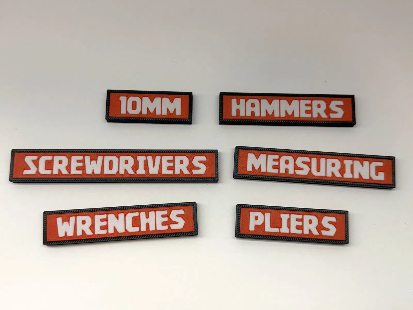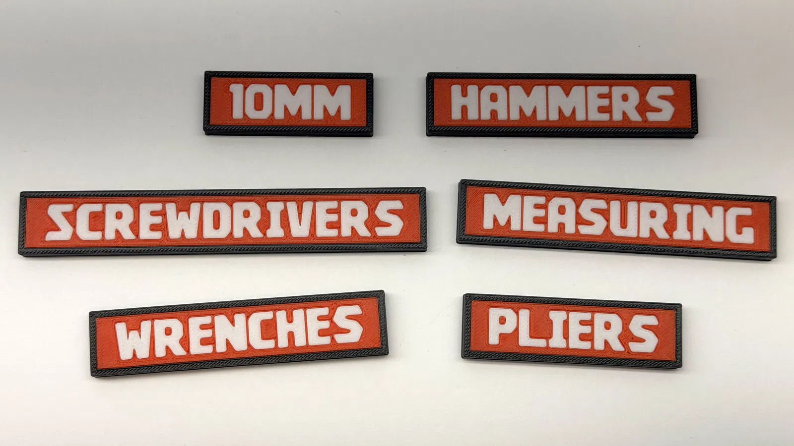 Bộ label dụng cụ dùng font Kroftsmann cho vẻ ngoài gọn gàng kiểu “factory”. Gói 6 nhãn sample miễn phí từ hệ Complete Toolbox System 116+ món, hỗ trợ gắn nam châm 9x3mm, tối ưu in PLA/PETG.