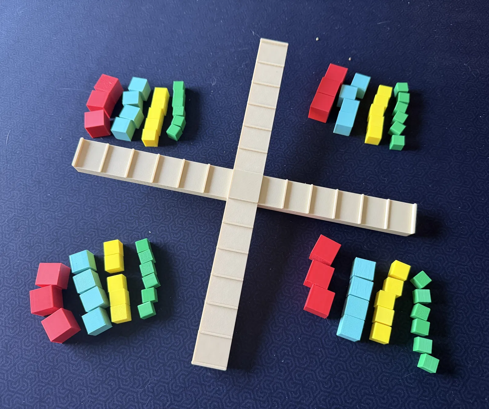 • Chơi 3 hoặc 4 người: mỗi người nhận 3 khối extra-large, 4 khối large, 5 khối medium và 6 khối small.
