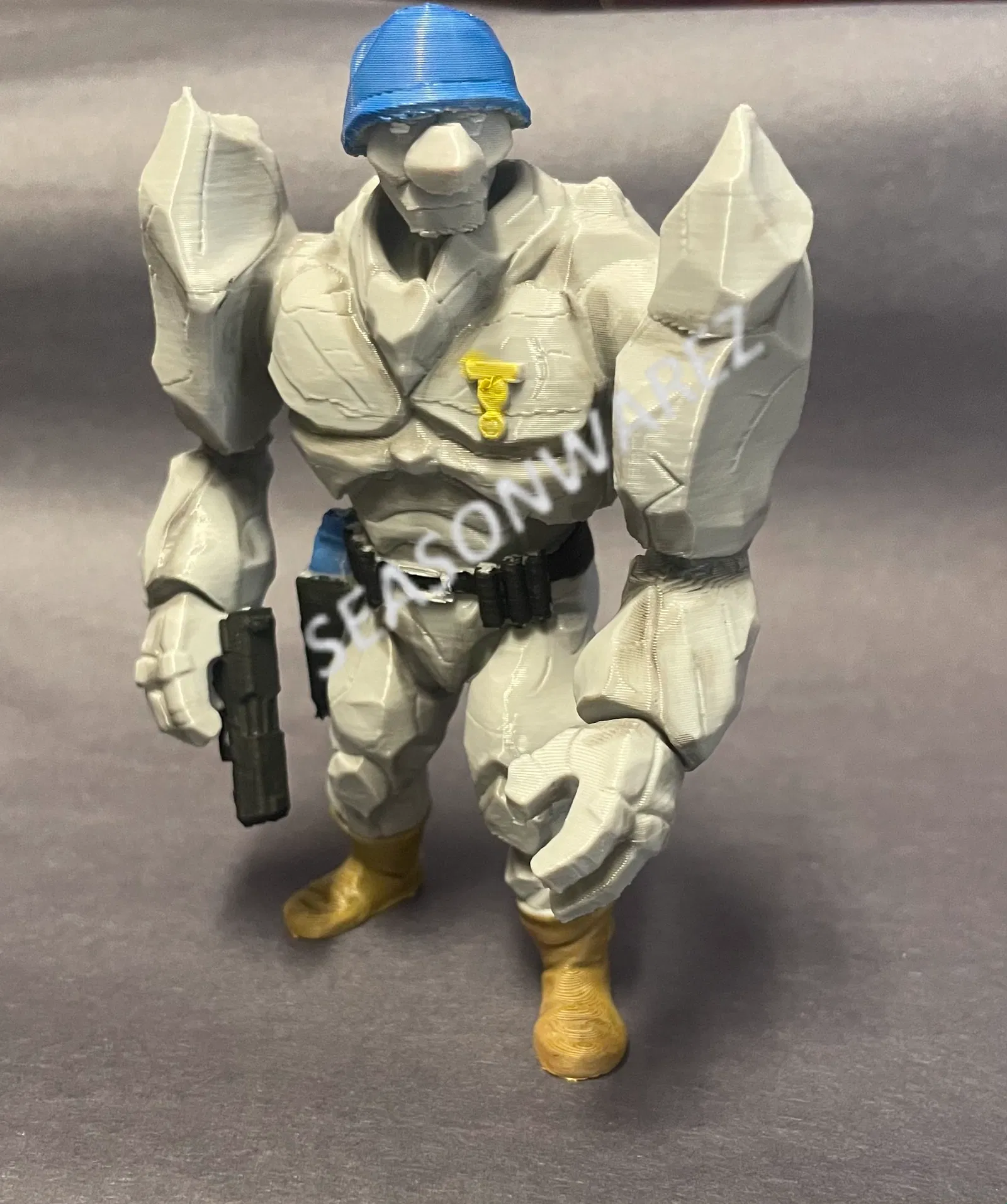 Bản sao 3D độ chi tiết cao của action figure Lieutenant Granitor (1990). Tái hiện da đá xanh xám sần rỗ, gương mặt lì lợm, flak vest cam-vàng, combat boots và mũ Rock Soldier—rất hợp dry-brushing & weathering cho fan TMNT vintage.