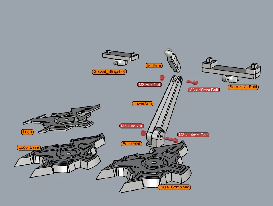 Chân đế bay Insignia hoàn thiện bộ flight stand cho team Aerialbots với Silverbolt. Có 3 điểm khớp cho nhiều góc trưng bày, peg vuông nông khớp cổng ngực. Cần ốc M3x10, M3x14 và ê-cu M3.