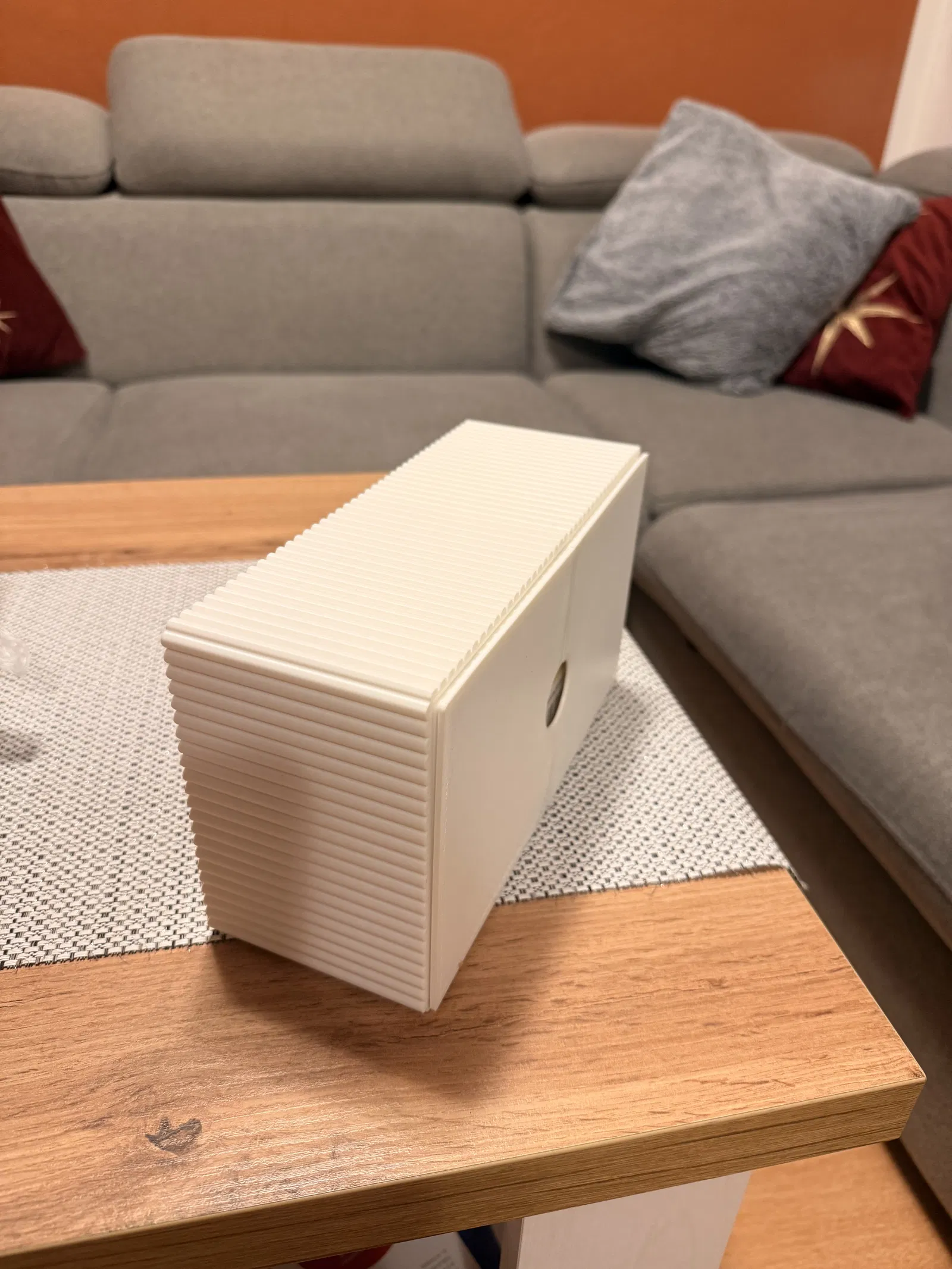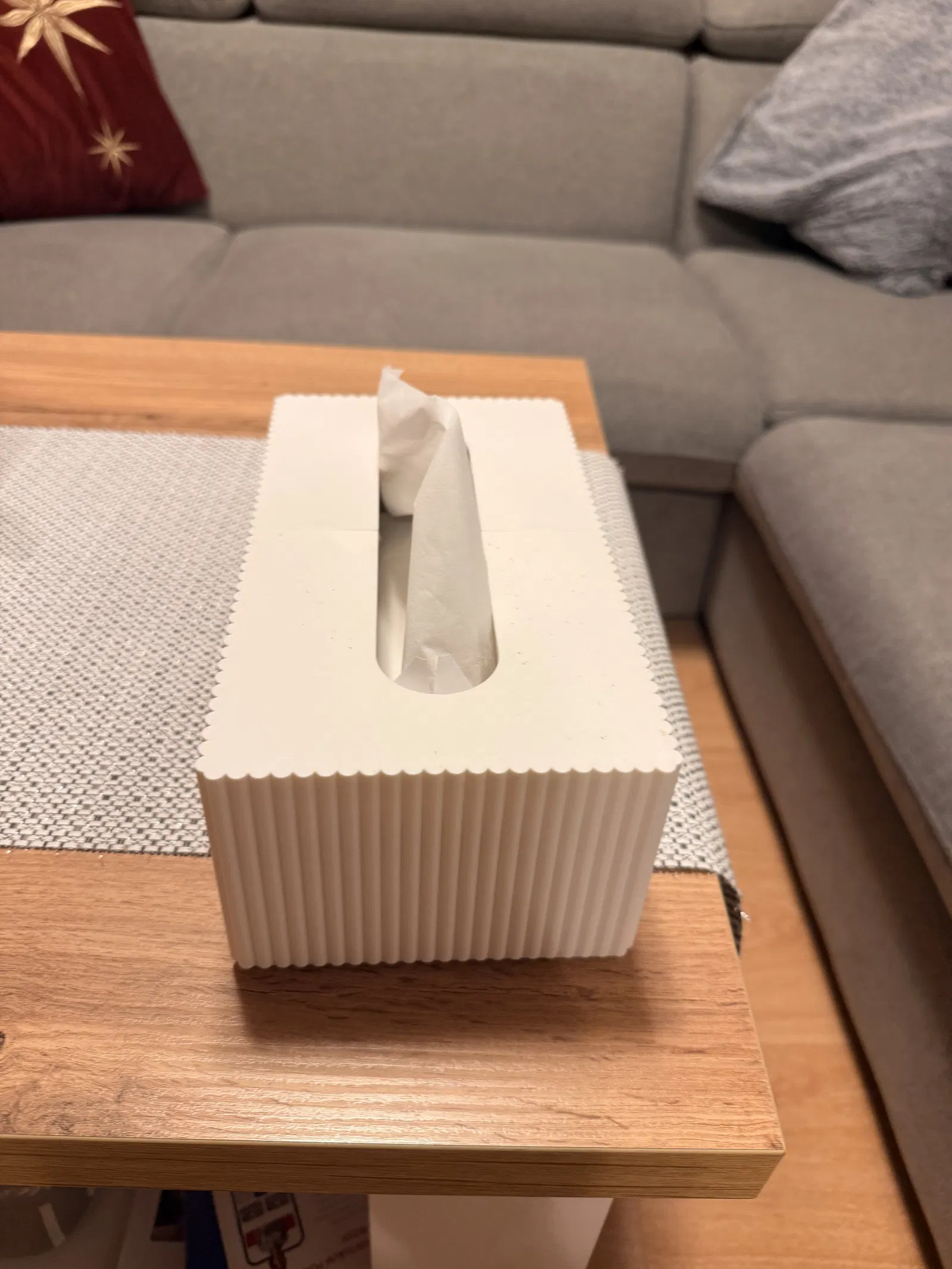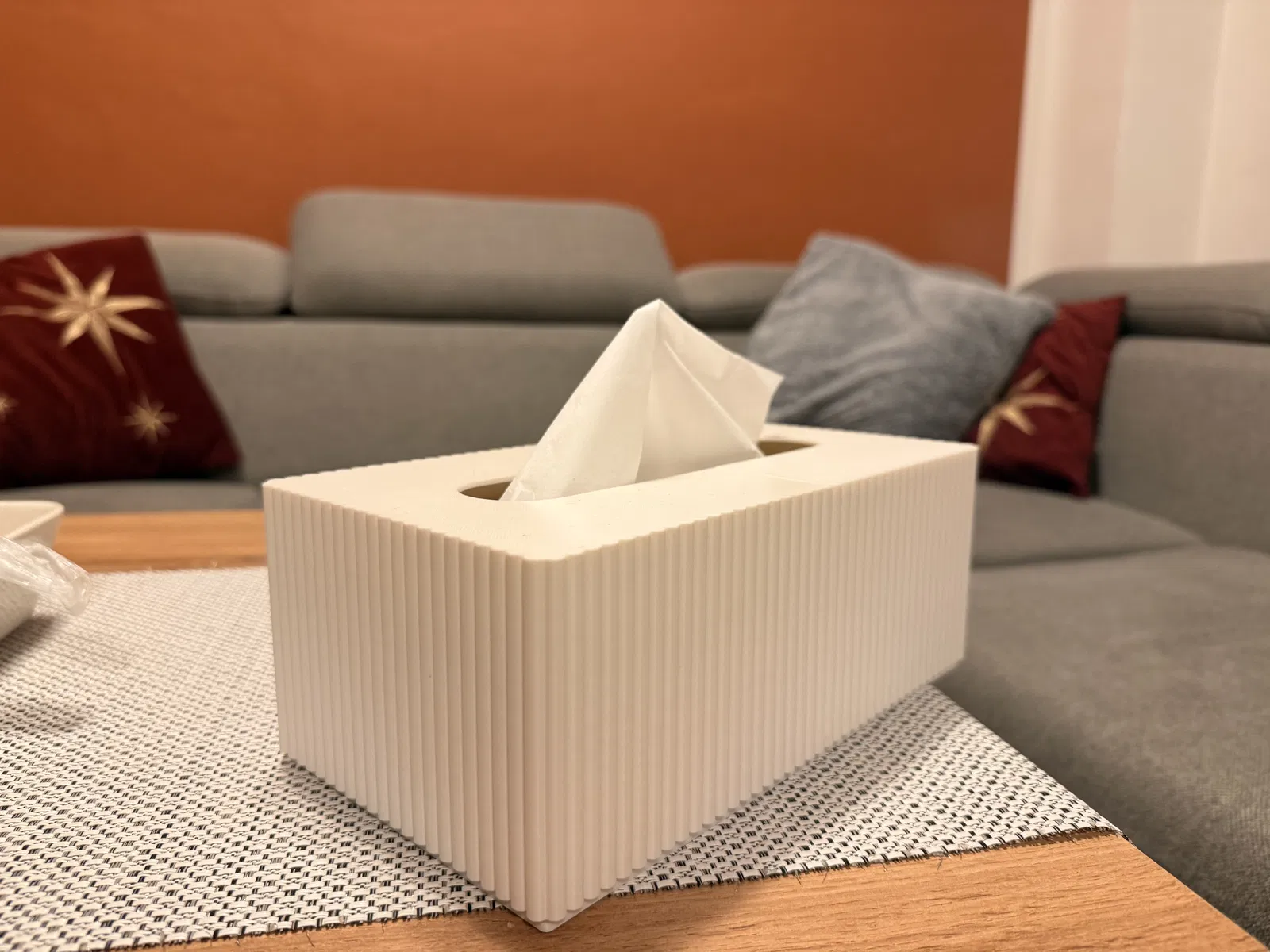 Mẫu hộp khăn giấy (Tissue box) trong bộ sưu tập, kích thước 236 x 120 x 90 mm. Gợi ý in PLA với infill Gyroid 15% và 2 lớp. Lắp ráp dùng mạch in đã in, dùng 8 nam châm NEO 20x5x2.