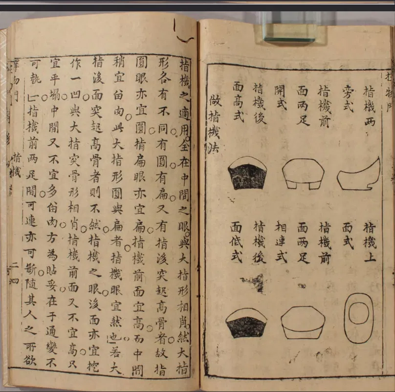 Nhẫn bắn cung ngón cái kiểu Trung Hoa (thumb ring) dựa theo tư liệu chữ viết thời Minh. Gaoying (高穎) gọi là 四捷機, nêu 4 “lợi thế” về móc dây, nhả dây, giảm mòn dây và bảo vệ ngón cái.