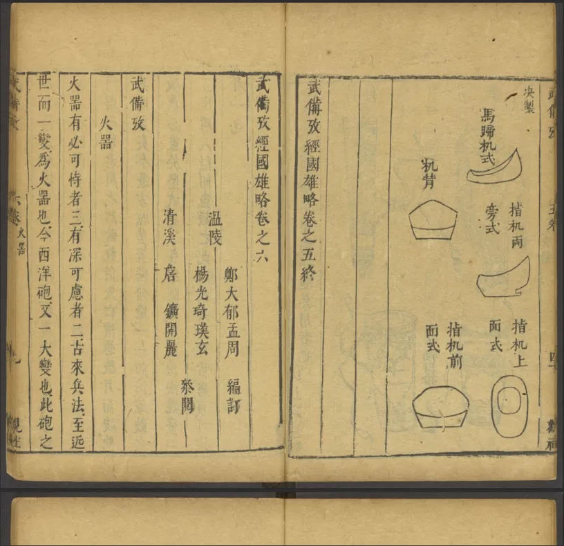 Cùng một hình vẽ cũng xuất hiện trong một nguồn khác tên là 經國雄略, là một tuyển tập về chiến lược/tư tưởng/trang bị quân sự thời Minh, được xuất bản ngay vào giai đoạn cuối thời Minh. Điều thú vị là tới lúc nó được phát hành thì nhà Thanh đã nắm quyền và cuốn sách nhanh chóng bị liệt vào dạng cấm. Mà chuyện này lại vô tình “hên”, vì sách không được tái bản rộng rãi về sau, nên các bản thảo tìm được gần như chắc chắn có thể định niên đại về cuối thời Minh.