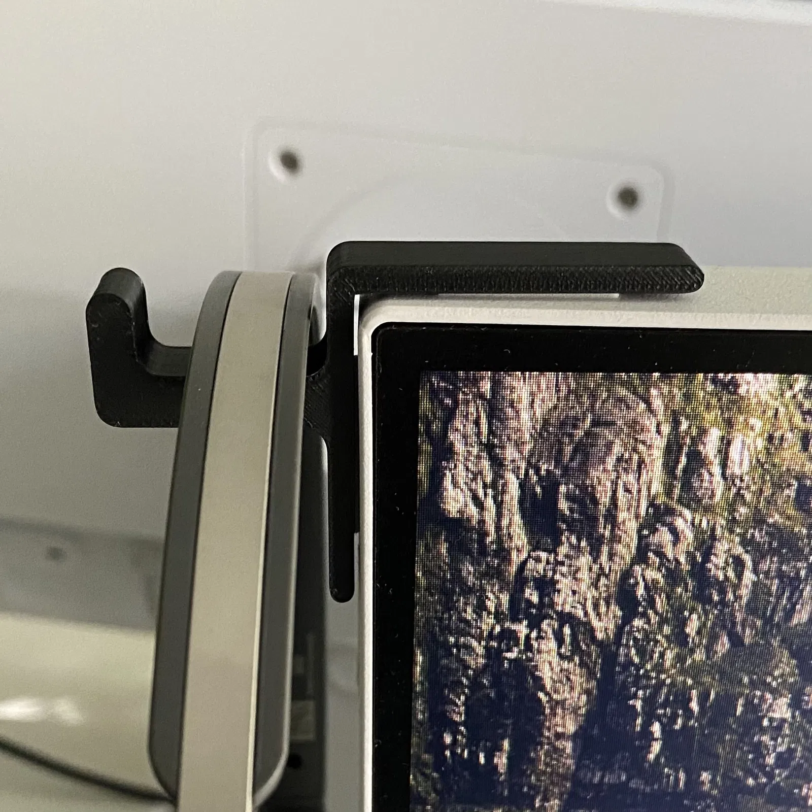 Giá đỡ tai nghe (Headset Holder) dán trực tiếp lên màn hình (Display), giúp treo tai nghe gọn gàng. Mẫu in thử với 4 perimeter bằng ABS, nhưng các vật liệu khác cũng có thể dùng tốt.