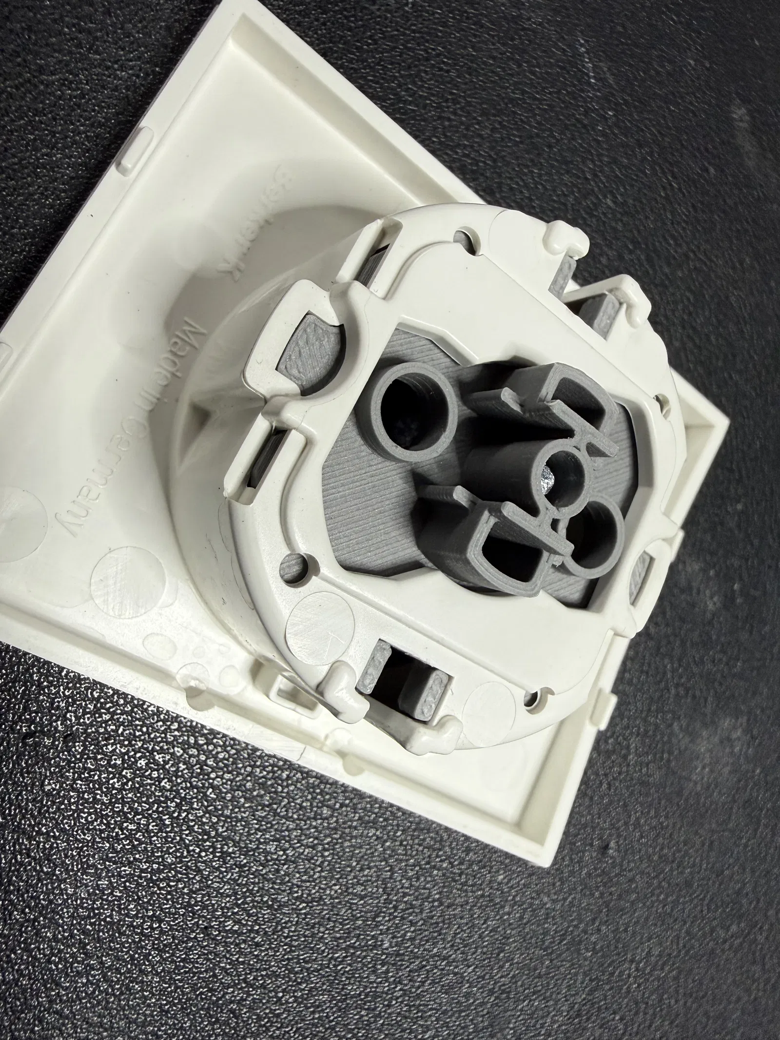 Dùng ổ cắm nhiều quá thì mấy cái nắp/ốp này cũng hay bị gãy. Mà tiếc là Berker không bán riêng phần nắp, nên mình làm lại một cái thật chi tiết và sát với bản zin. Lắp kiểu snap vào đúng vị trí, y như hàng theo ổ từ nhà máy.
