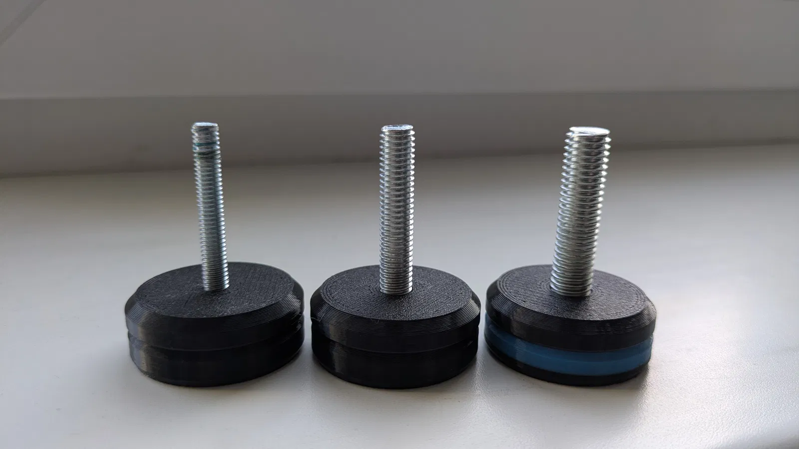 Bộ chân đế lắp ráp “Feet M6 M8 M10” dùng cho thiết bị như tủ lạnh, máy giặt. Phần nhựa đường kính 40mm, in 2 miếng riêng rồi kẹp lại. Hỗ trợ dùng bulong M6/M8/M10 và có thể tháo rời khi cần.