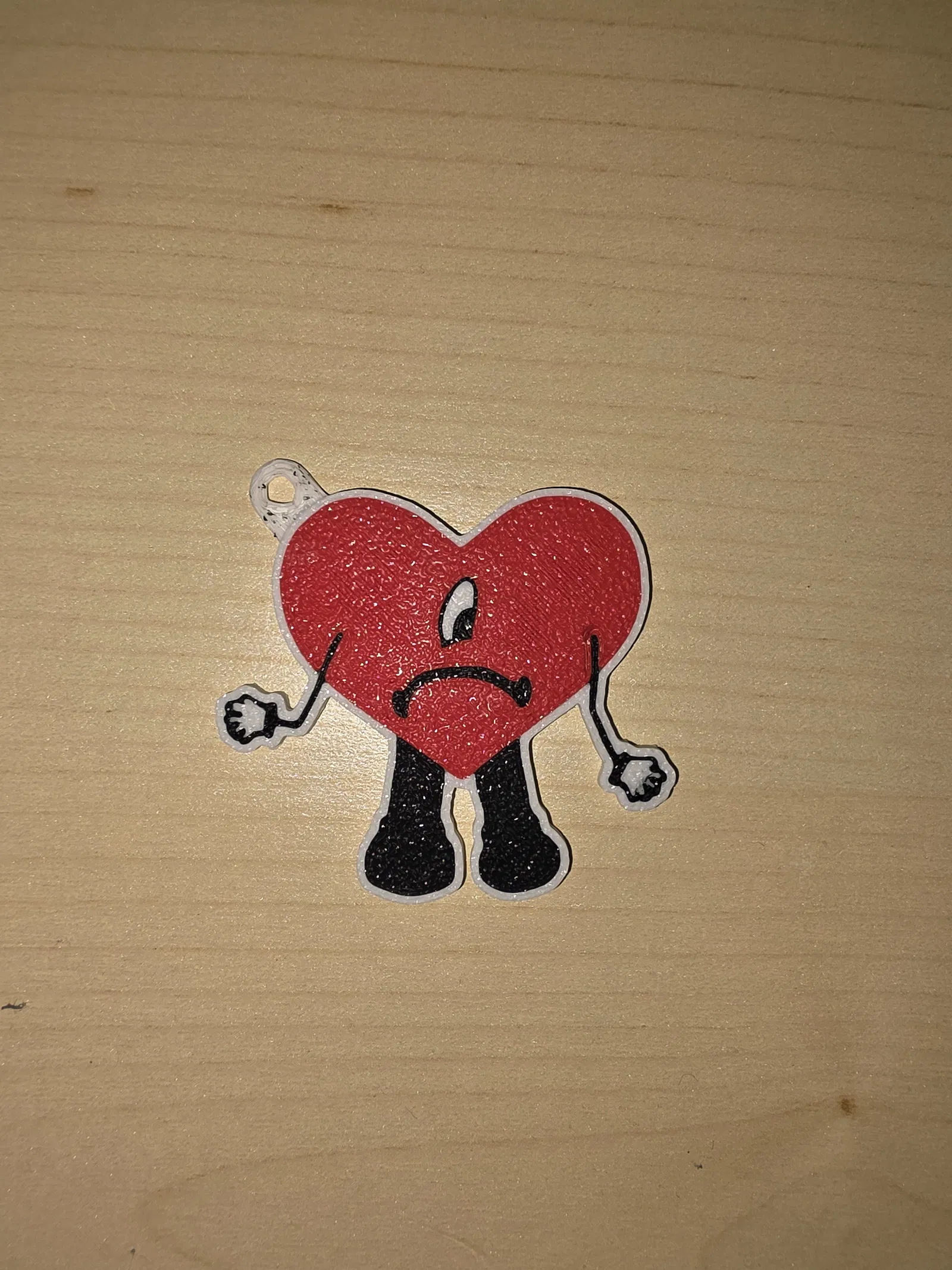Mẫu móc khóa 3D hình trái tim lấy cảm hứng từ album *Un Verano Sin Ti* của Bad Bunny (AMS). Phù hợp để in làm keychain quà tặng, phụ kiện balo hoặc trang trí theo phong cách reggaeton/latino.