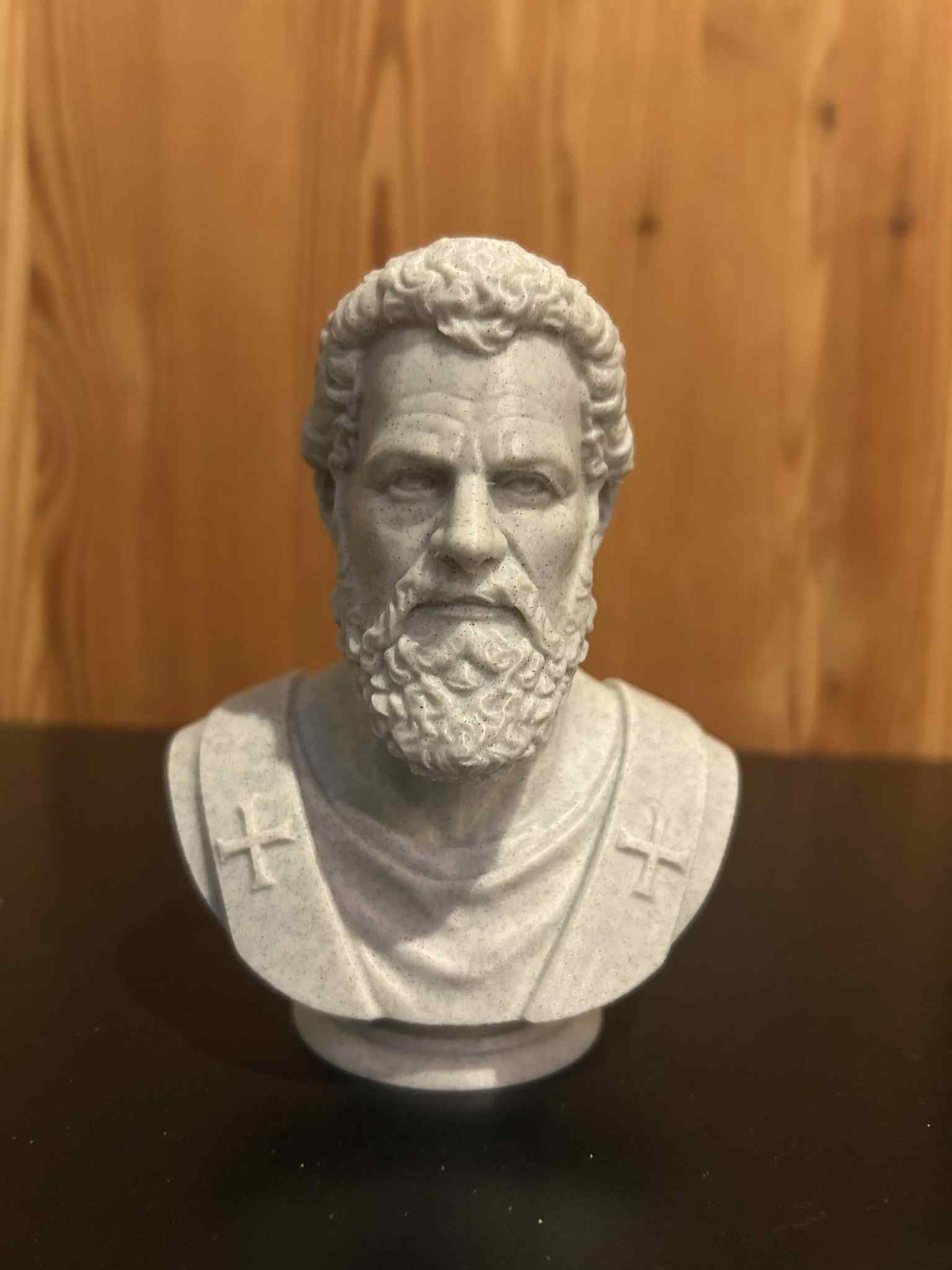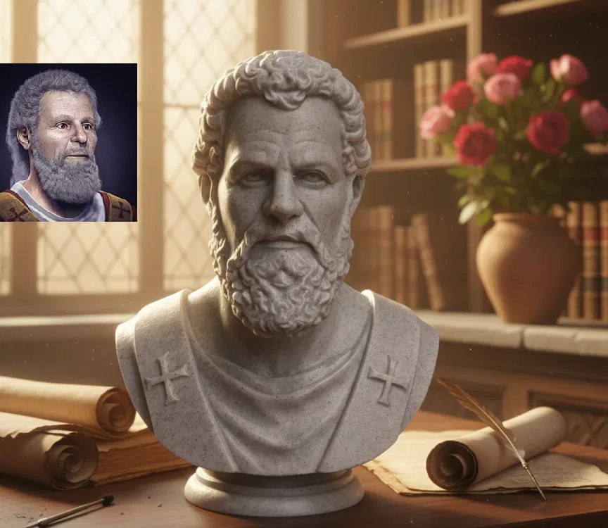 Mẫu tượng bán thân Valentin de Terni (Saint Valentin) lấy cảm hứng từ phục dựng gương mặt 3D khoa học. Tạo hình nhìn thẳng, trang nghiêm, khối rõ nét—phù hợp in 3D và mang ý nghĩa biểu tượng về tình yêu, thủy chung, can đảm.