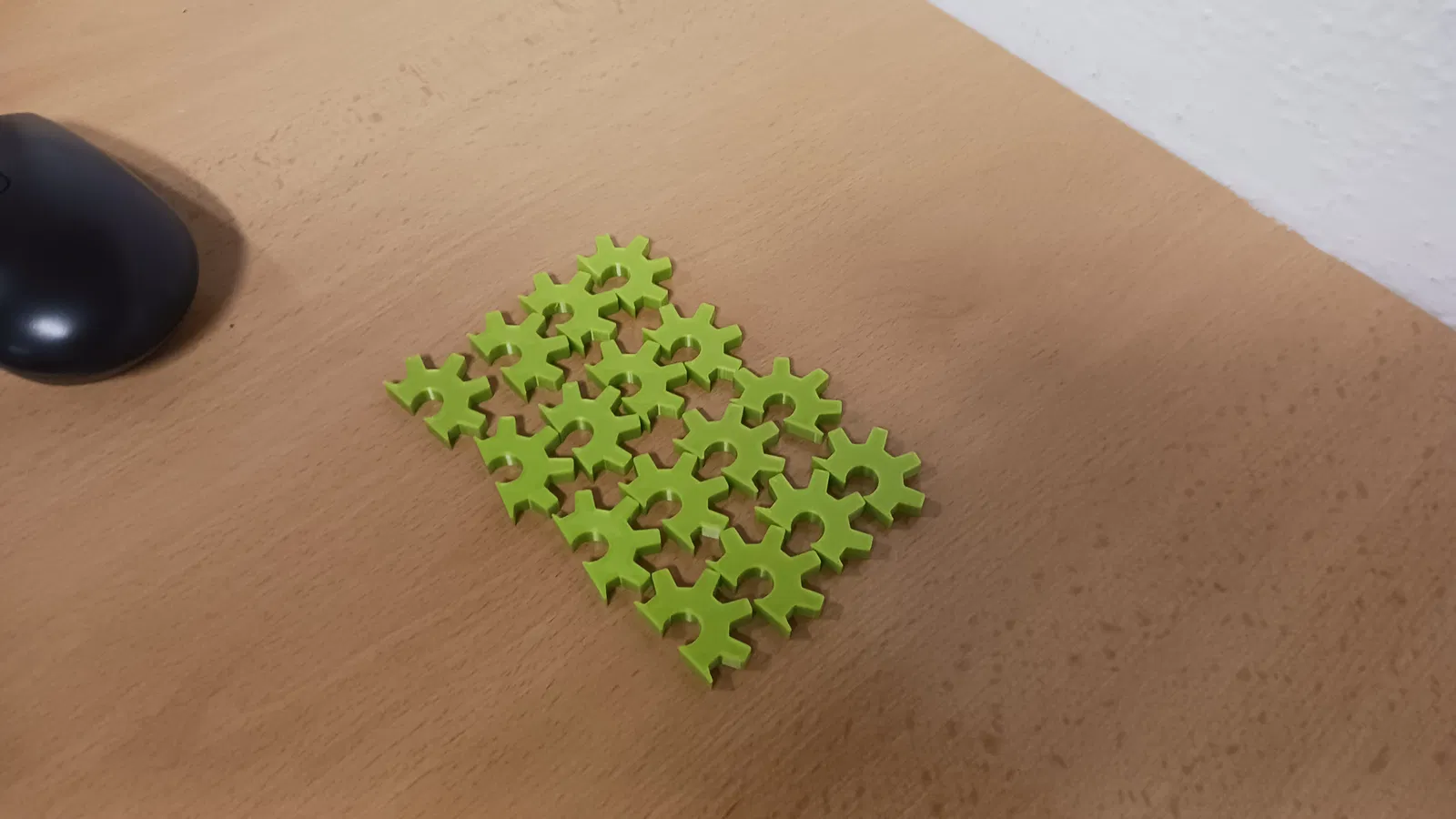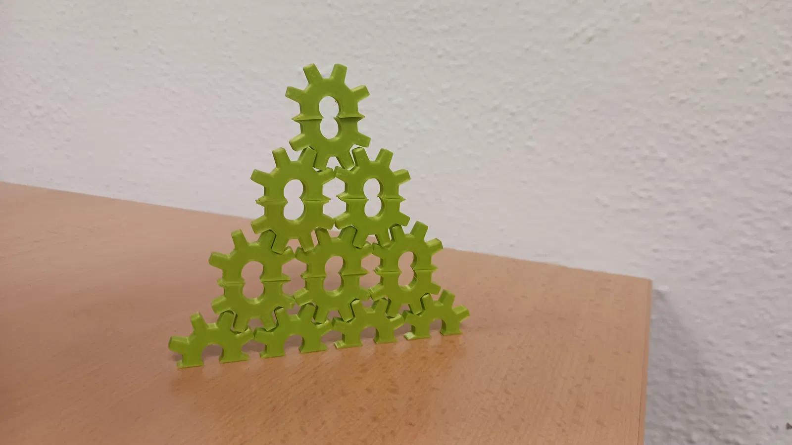 Mẫu “Balanční hra” là trò chơi cân bằng, nơi bạn xếp chồng các nửa bánh răng lên nhau để dựng công trình. Ai làm rơi mảnh trước sẽ bị loại; người trụ được lâu nhất là người thắng.