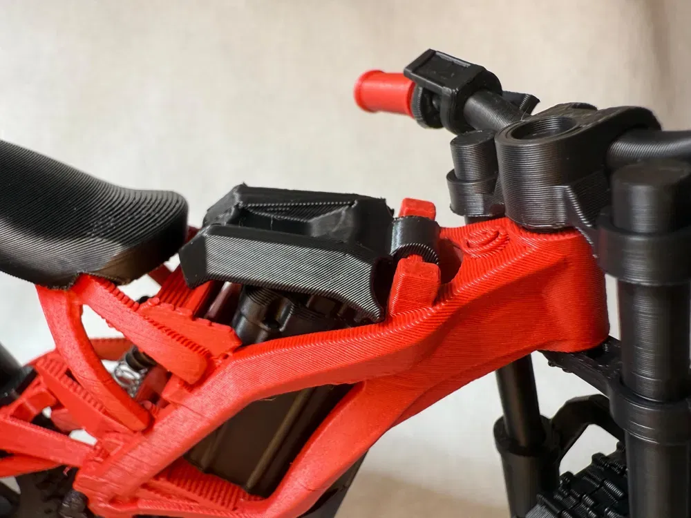 Đây là mẫu xe Electric Dirt Bike Full Suspension tỉ lệ 1:9 với phuộc trước hoạt động, giảm xóc sau hoạt động, bánh xe quay được và pin tháo rời. Mẫu này dễ in và dễ ráp, chi tiết nhìn rất thật. Gần như in 3D 100%, ngoài 2 lò xo (tuỳ chọn) cho hệ treo.