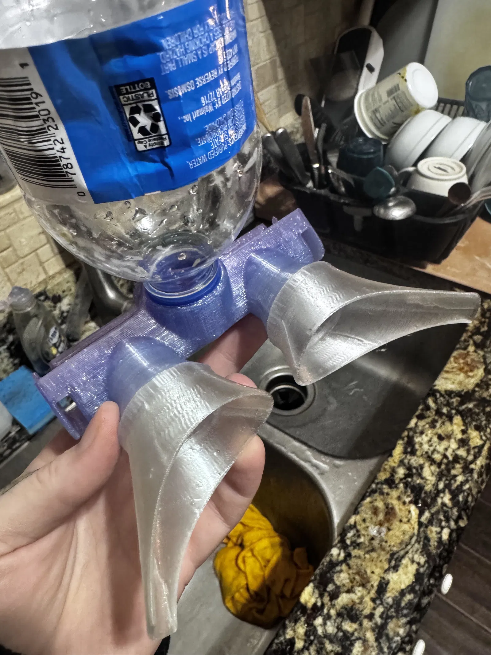 Khuyến nghị rất cao là nên dip coat (nhúng phủ) món này bằng một loại sealant food-safe với nhiều lớp. Ngoài ra, chỉ nên dùng với distilled water (nước cất) hoặc dung dịch rửa mắt OTC. Việc này giúp hạn chế tích tụ vi khuẩn, cũng như giảm nguy cơ vi nhựa và bụi mạt có thể bong ra trong lúc sử dụng. Khuyến nghị tiệt trùng thiết bị giữa mỗi người dùng bằng cồn 99%.