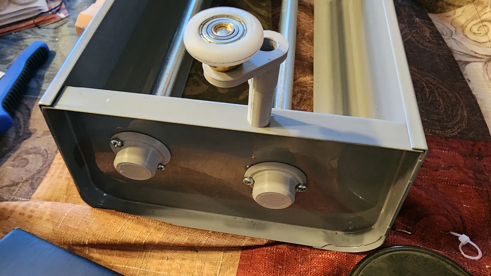 1. Đổi mấy cái chặn thùng (barrel stops) bằng nhựa sang roller wheel. Cách này giúp thùng không còn bị cà/ma sát lên khung.