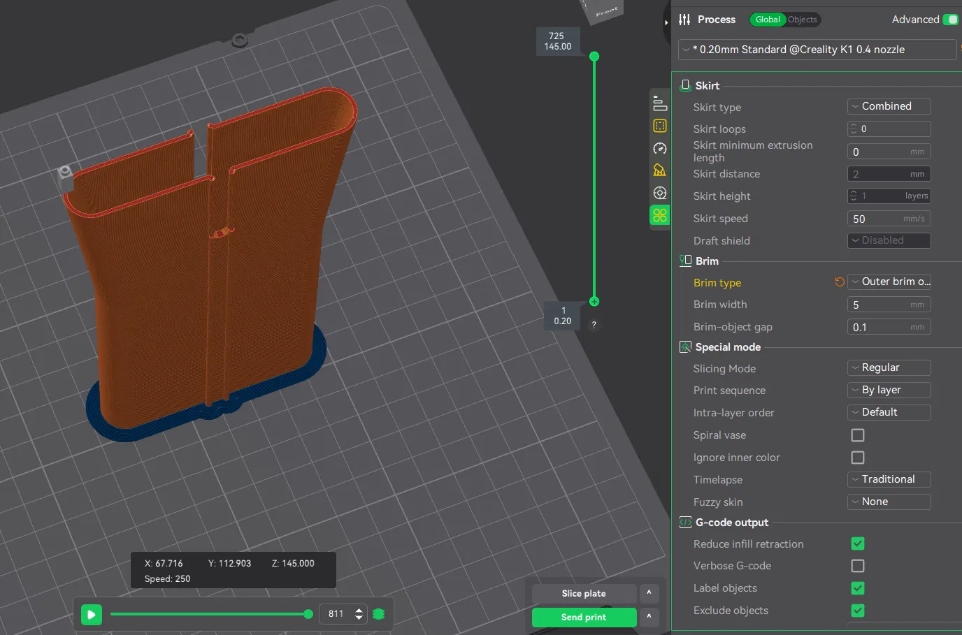 Chỉ dùng outer brim khi in phần conical handlebar mount. Xem screenshots.