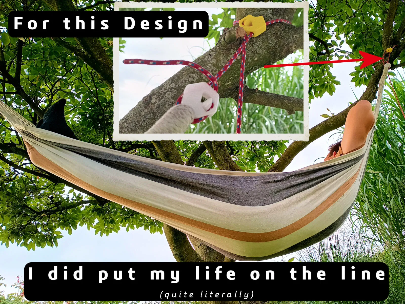 Để chứng minh độ bám và độ chắc của Rope Rap, mình treo hẳn một cái võng rồi nằm lên. Như vậy mỗi đầu phải chịu khoảng 60Kg, và lúc ngồi xuống võng thì lực còn có thể cao hơn, nhưng nó vẫn cắn dây rất chắc!