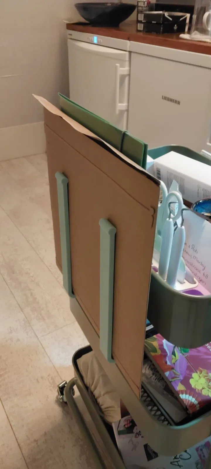 Mẫu kẹp giữ tờ giấy snap-on đơn giản, gắn nhanh vào xe đẩy IKEA RÅSKOG. Thiết kế gọn nhẹ, dễ in 3D và tháo lắp tiện, giúp giữ giấy/tài liệu ngăn nắp khi sử dụng.