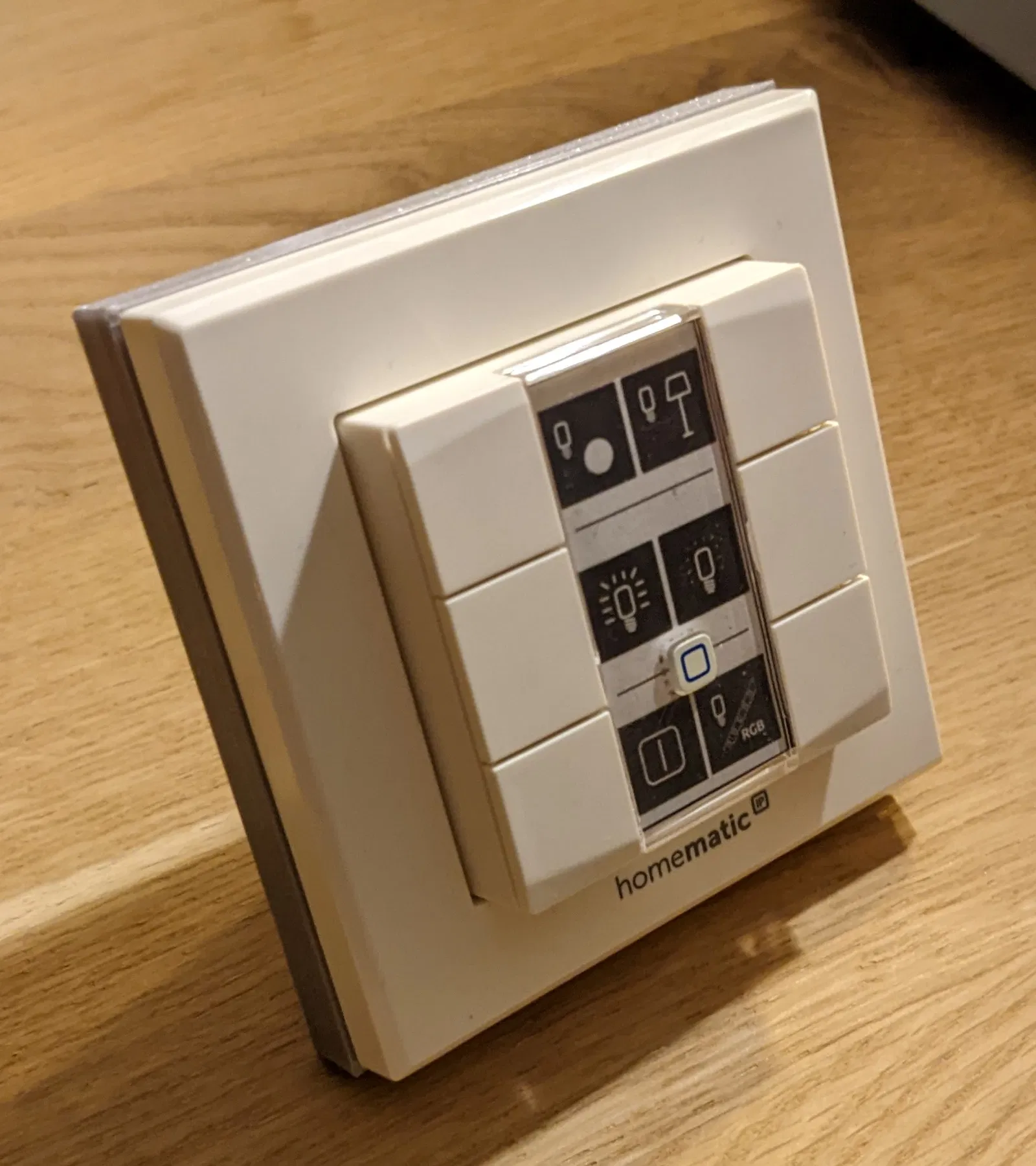 Các giá đỡ nhỏ để đặt các bộ điều khiển Homematic lên mặt tủ. Góc nghiêng là 30°.