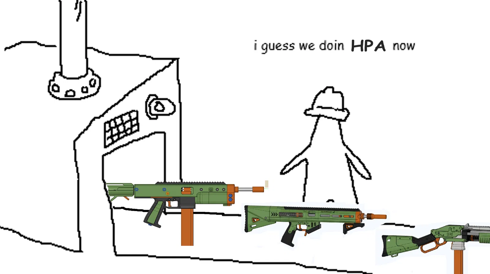 Người ta dùng chữ HPA để phân biệt với “LPA” hay “Low Pressure Air” blaster. LPA là kiểu bạn hay chơi hồi nhỏ: có bơm tay kéo tới kéo lui để nạp khí vào bình, rồi bóp cò bắn một phát.