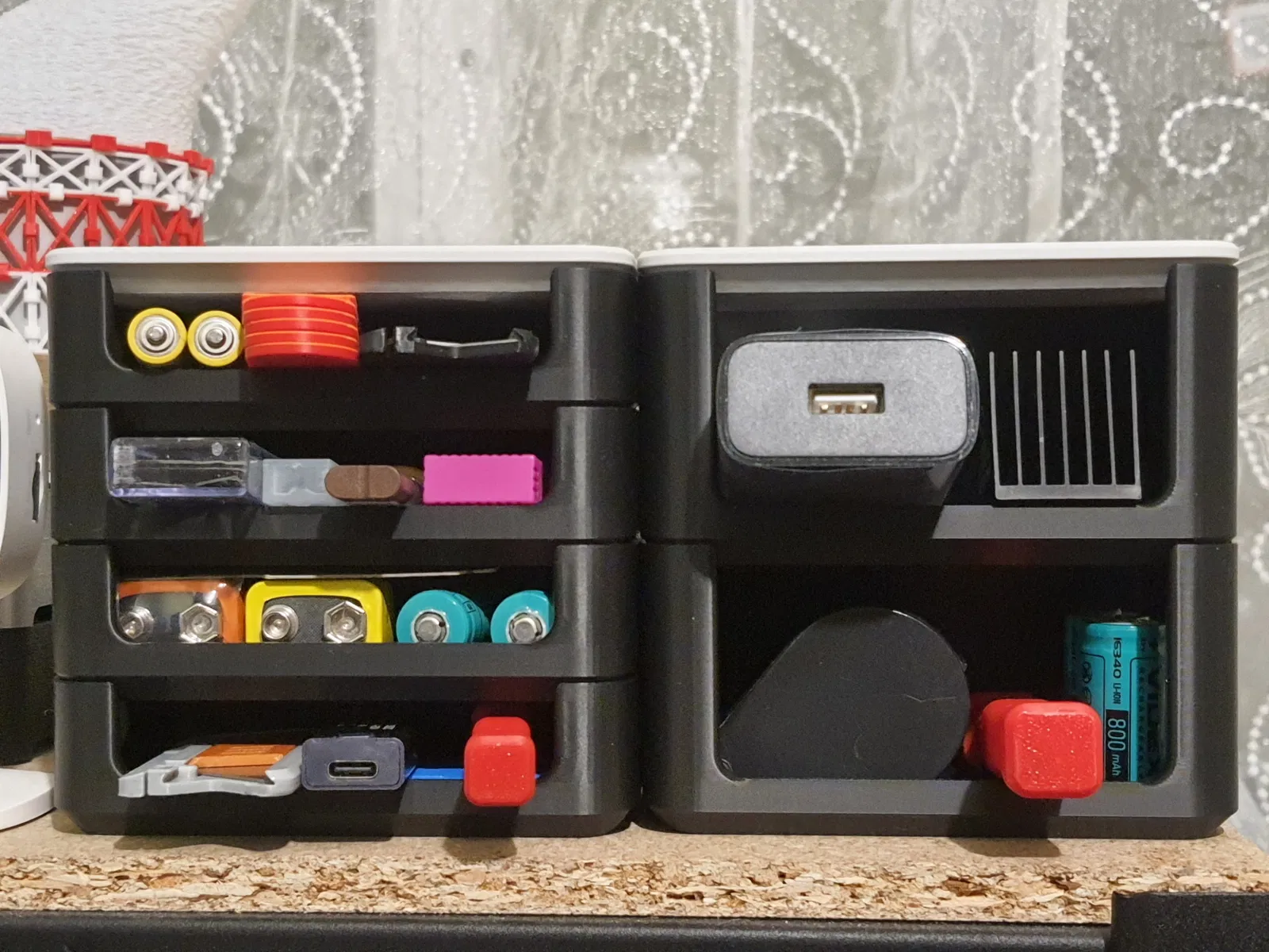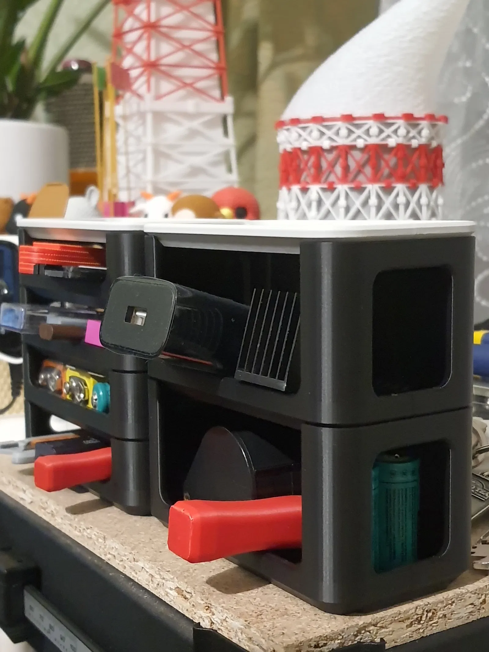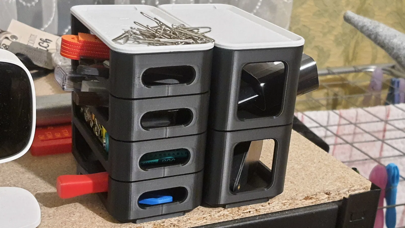 Những khay này hướng tới việc tổ chức đồ đạc đa dụng, phù hợp để đựng dụng cụ, thiết bị, chi tiết nhỏ hoặc đồ dùng văn phòng. Khay có các vị trí gắn nam châm, giúp giữ các vật kim loại cố định chắc chắn hơn.