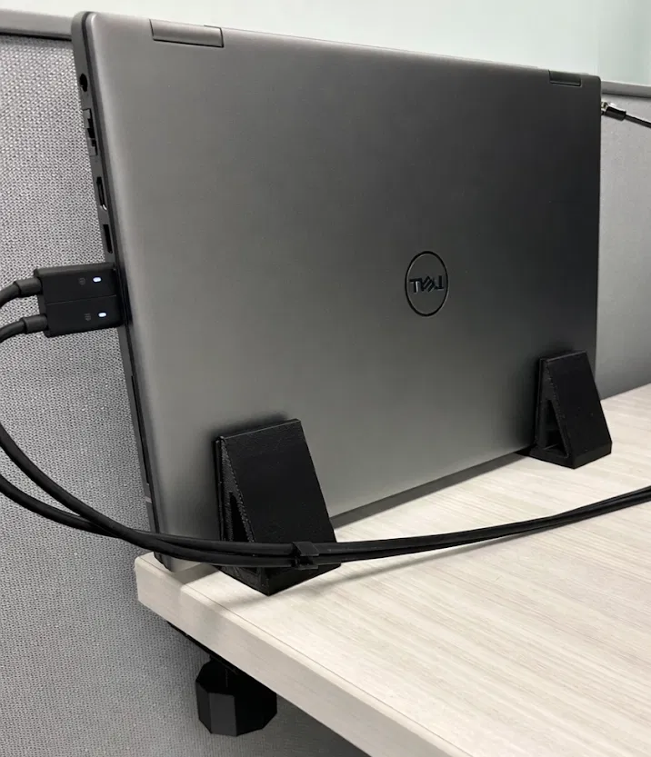 Thiết kế này làm để vừa một chiếc laptop Dell cỡ lớn, nhưng vì hai cái stand/kẹp tách rời nhau nên bạn có thể canh chỉnh theo bề ngang laptop bạn cần. Mình in bằng PLA, nhưng mình nghĩ PETG có thể sẽ tốt hơn để kẹp xuống có thêm chút độ dẻo/linh hoạt.