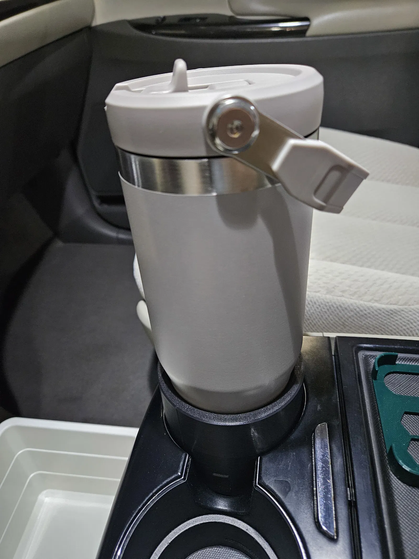 Adapter cho hộc để ly trên center console của Toyota Sienna 2011–2015, dùng vừa tumbler Stanley 30 oz. Muốn khít và chắc hơn, quấn thêm thun cao su hoặc dán foam tape dày 1 mm quanh vành ngoài.