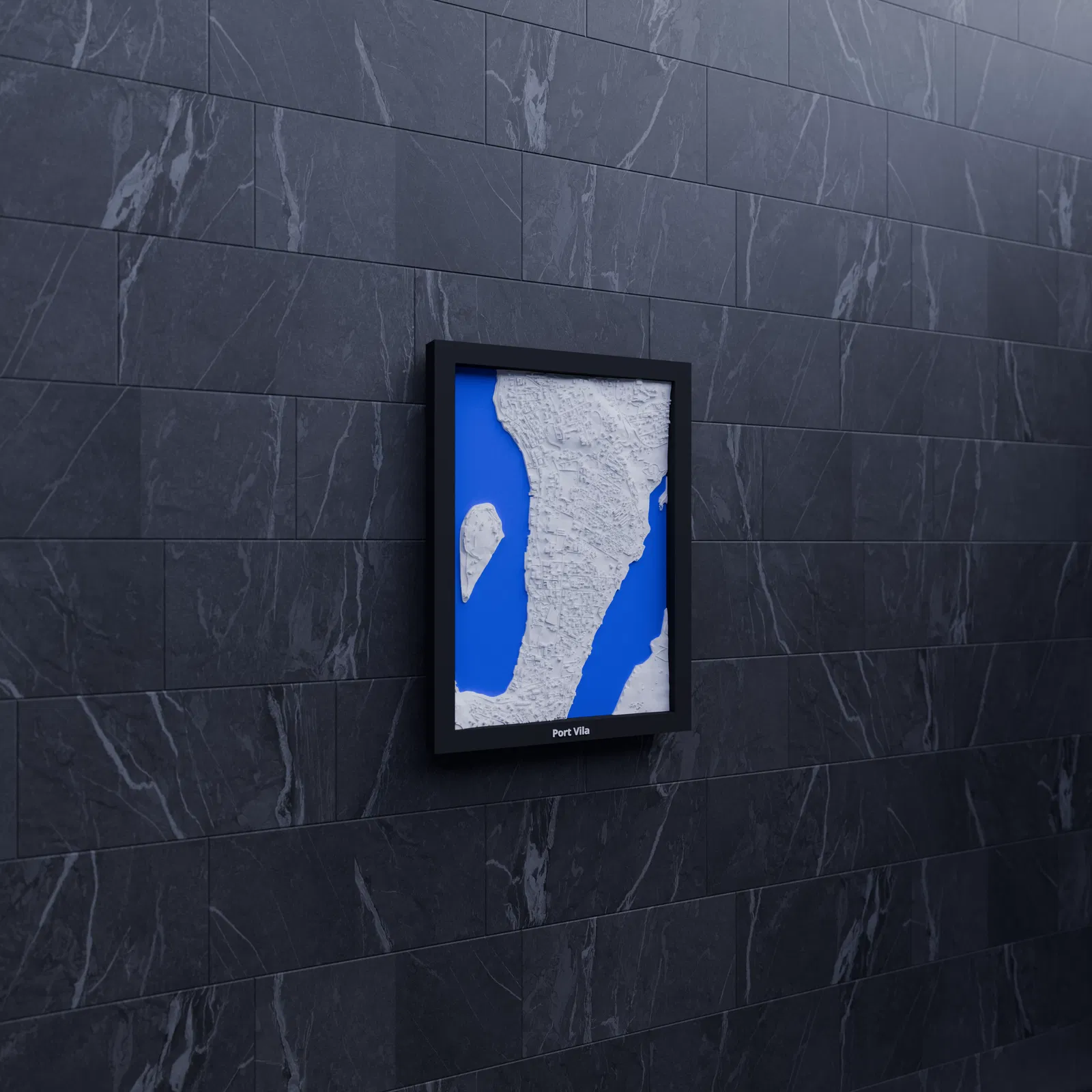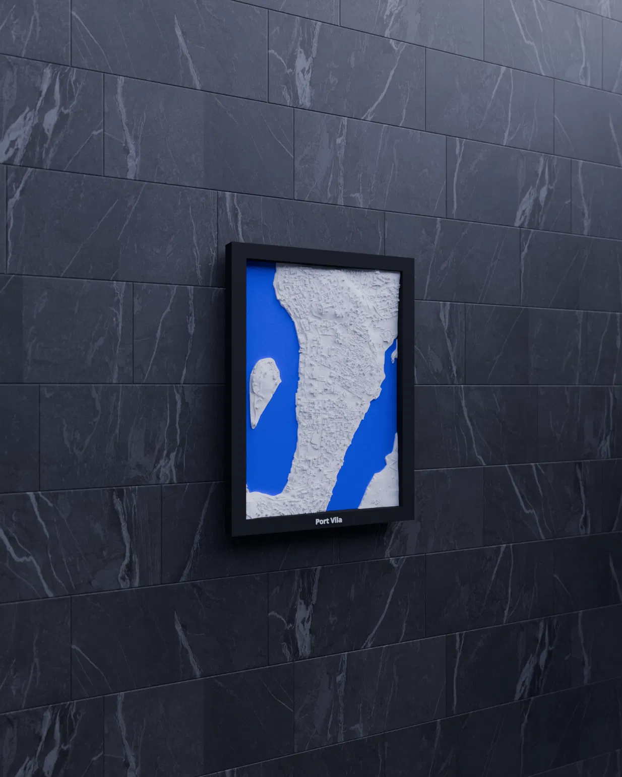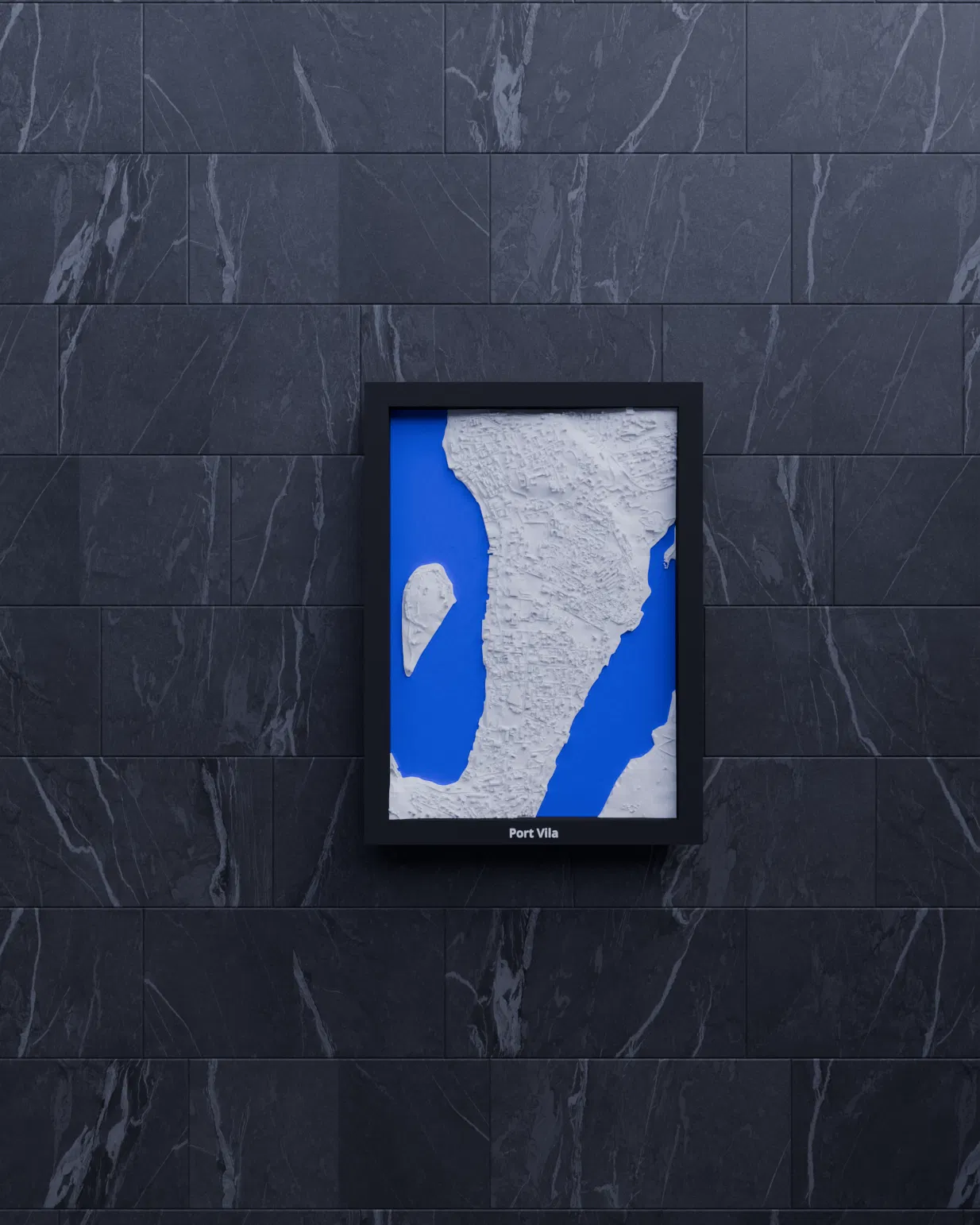 Mô hình thu nhỏ địa hình Port Vila (Vanuatu) dựng từ dữ liệu địa lý, tỉ lệ khoảng ~16503:1. Kích thước in 119.5 × 170.5 mm, có frame kèm lỗ treo. Phù hợp trưng bày, học tập hoặc làm quà.