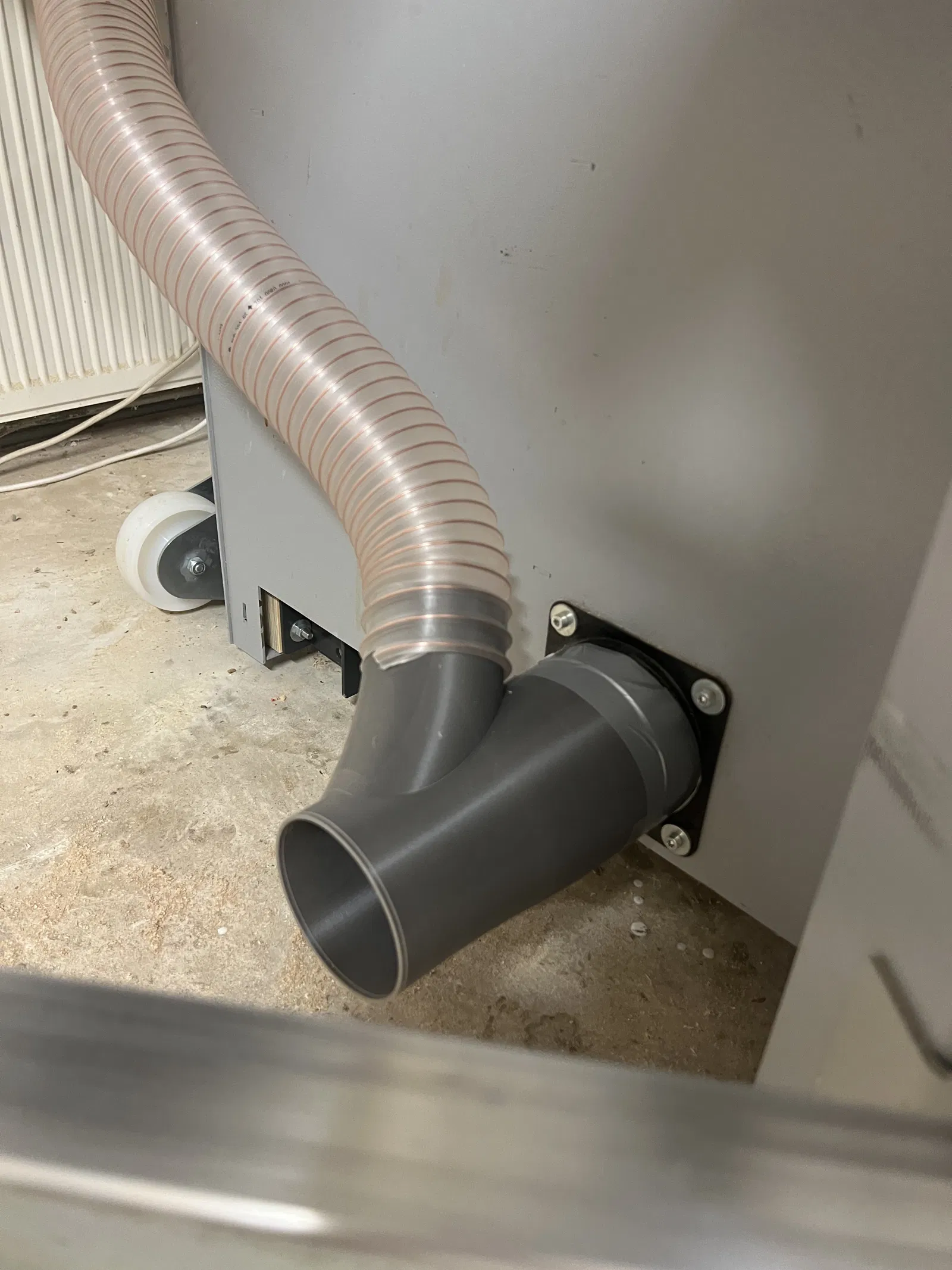 Một cái adapter đơn giản để gắn ống hút bụi 100mm vào máy cưa bàn Felder K500. Nó sẽ gắn vào cửa xả 120mm của máy, kèm thêm một cửa vào 80mm cho chụp hút bụi overarm. Cũng có thể dùng được cho các dòng cưa tương tự khác.