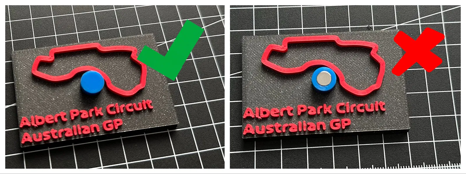 Khi in, Magnetholder sẽ hoàn tất trước điểm Pause, nên khi máy tạm dừng bạn có thể lấy Magnetholder ra và nhét nam châm vào. Nhớ để nam châm đúng chiều: mặt mở của Magnetholder phải hút/dính lên phần Tracks của Circuit sliders (mình có đăng vài hình).