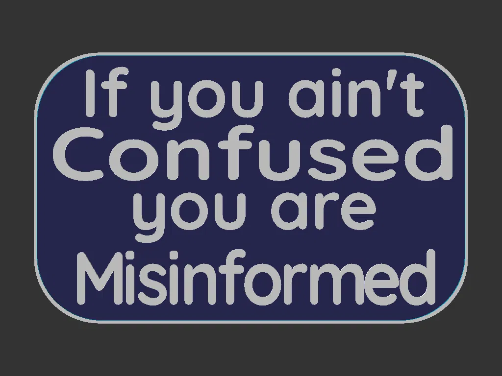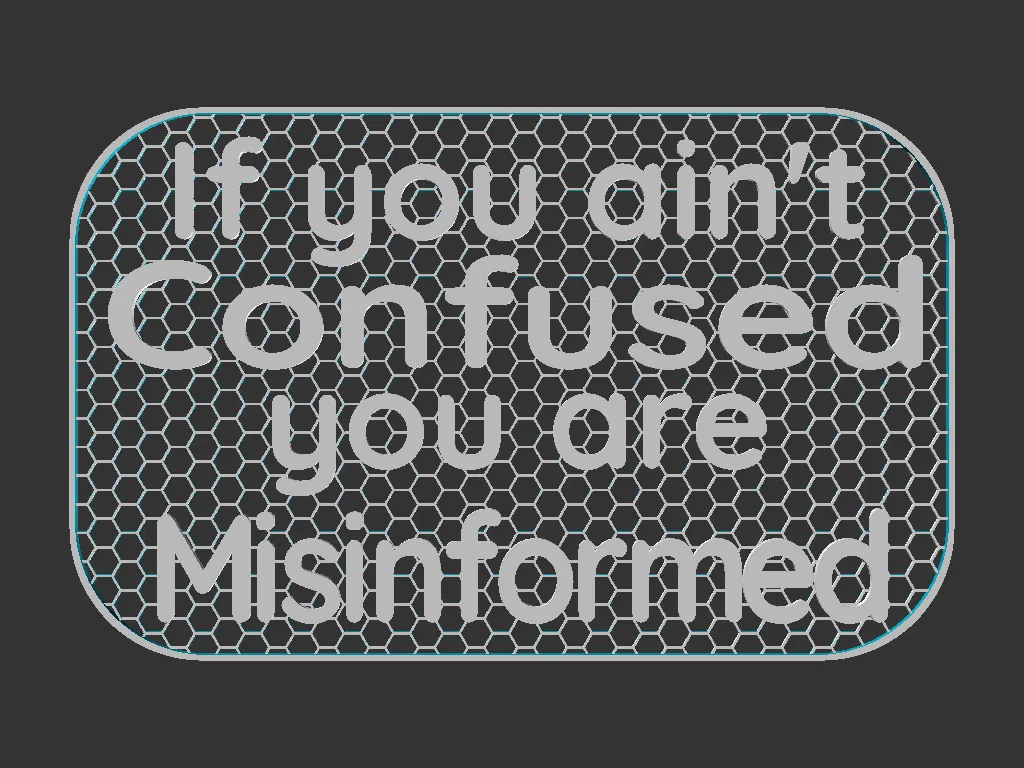 Bảng 100x160mm với câu “If you ain't Confused, you are Misinformed”. Có bản Mesh và Solid, khuyến nghị đổi màu trên 1mm (gcode kèm theo). Phù hợp dùng với Shadowbox Frames.