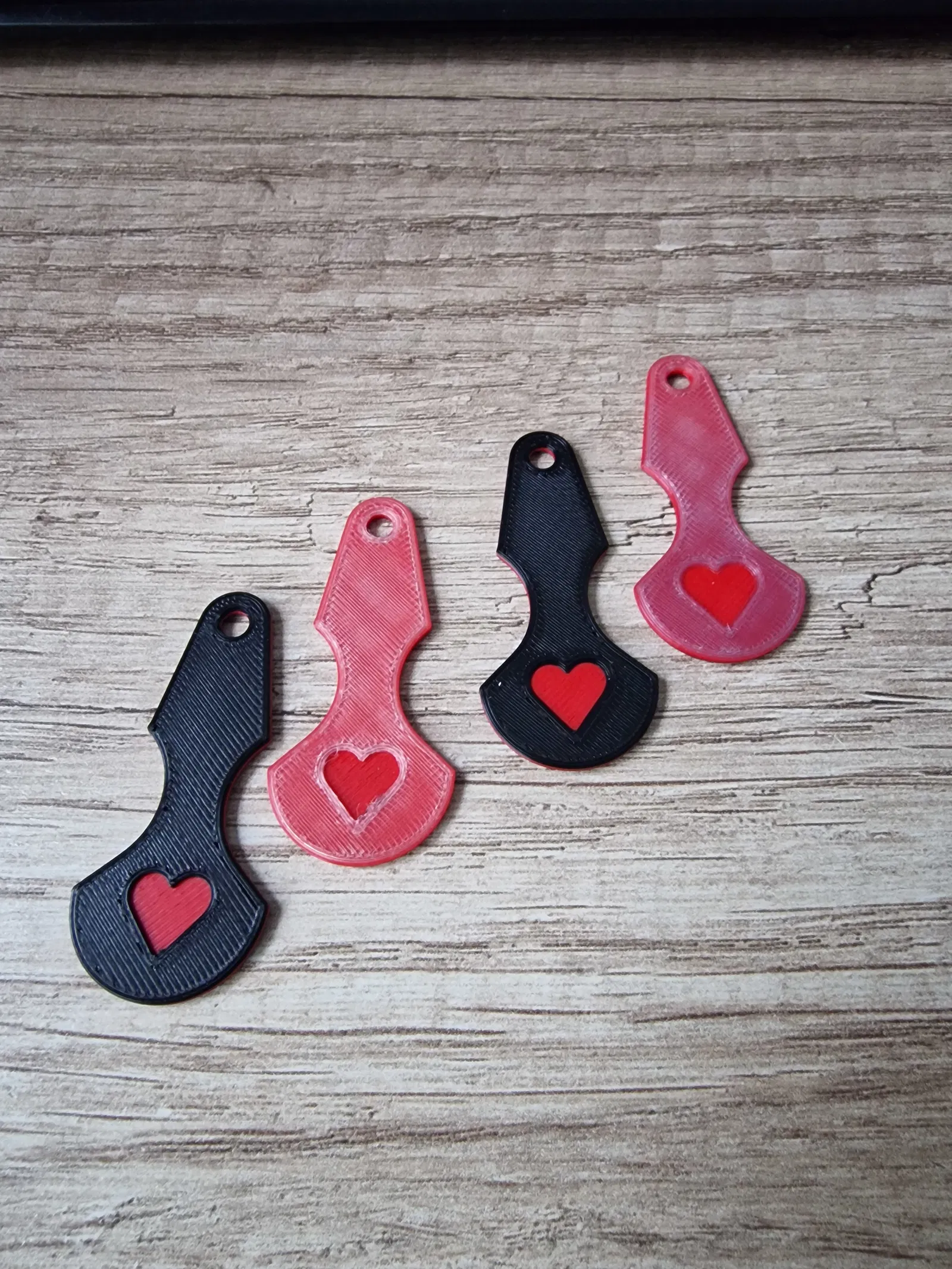 Token xe đẩy mua sắm hình trái tim, thiết kế đơn giản và dễ in. Đẩy thẳng token vào khe để mở khóa xe đẩy, rồi kéo lệch sang bên và rút ra. Gợi ý in PET-G, layer 0,2mm, infill 15%.