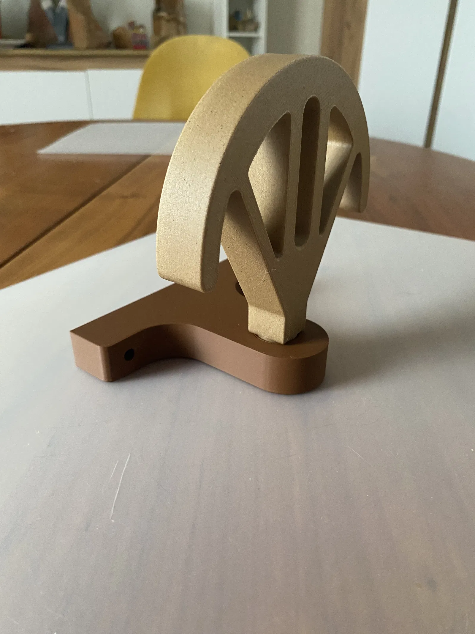 Porte chapeaux là giá đỡ để treo/đặt nón và nón lưỡi trai đủ loại. Gợi ý in: PLA màu nâu và PLA bamboo, layer 0.2 mm, nozzle 0.4 mm; nhớ đặt thêm support trên mặt bàn in cho phần “support chapeau 2”.