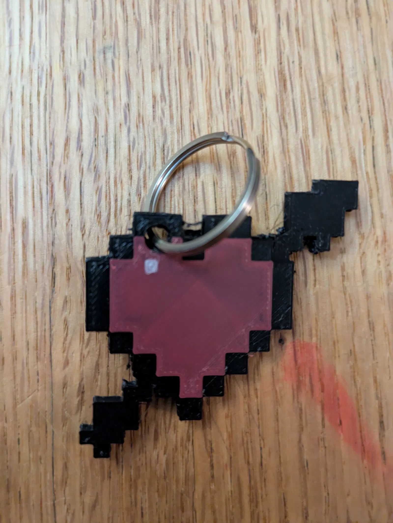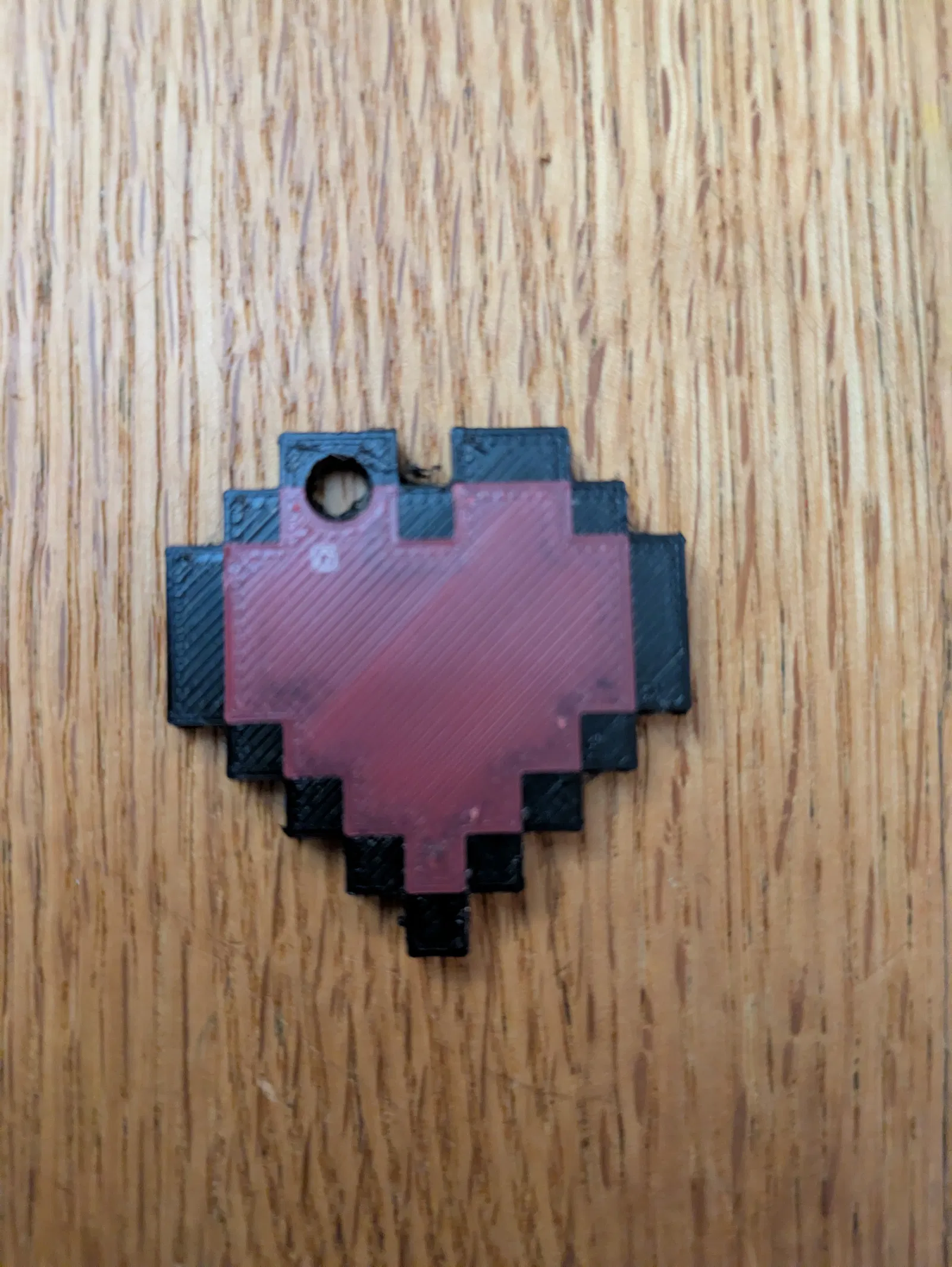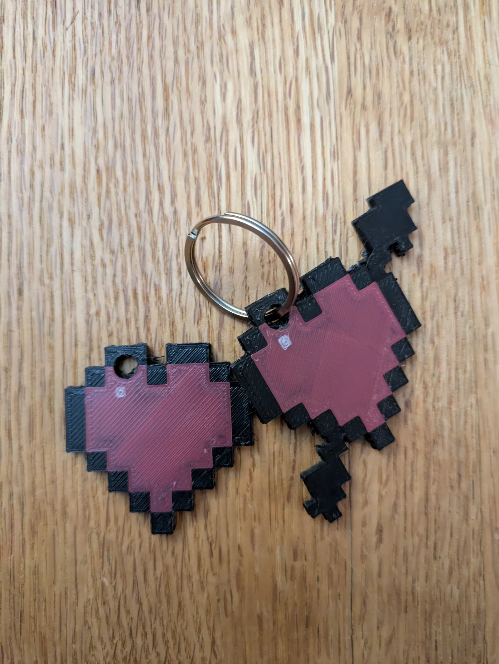 Mẫu trái tim Minecraft kèm tùy chọn trái tim có mũi tên xuyên qua. Thiết kế mỏng, phù hợp để bỏ phong bì gửi thư. Gợi ý in với nozzle 0.4mm và thêm pause ở layer 32, 34 để đổi màu.