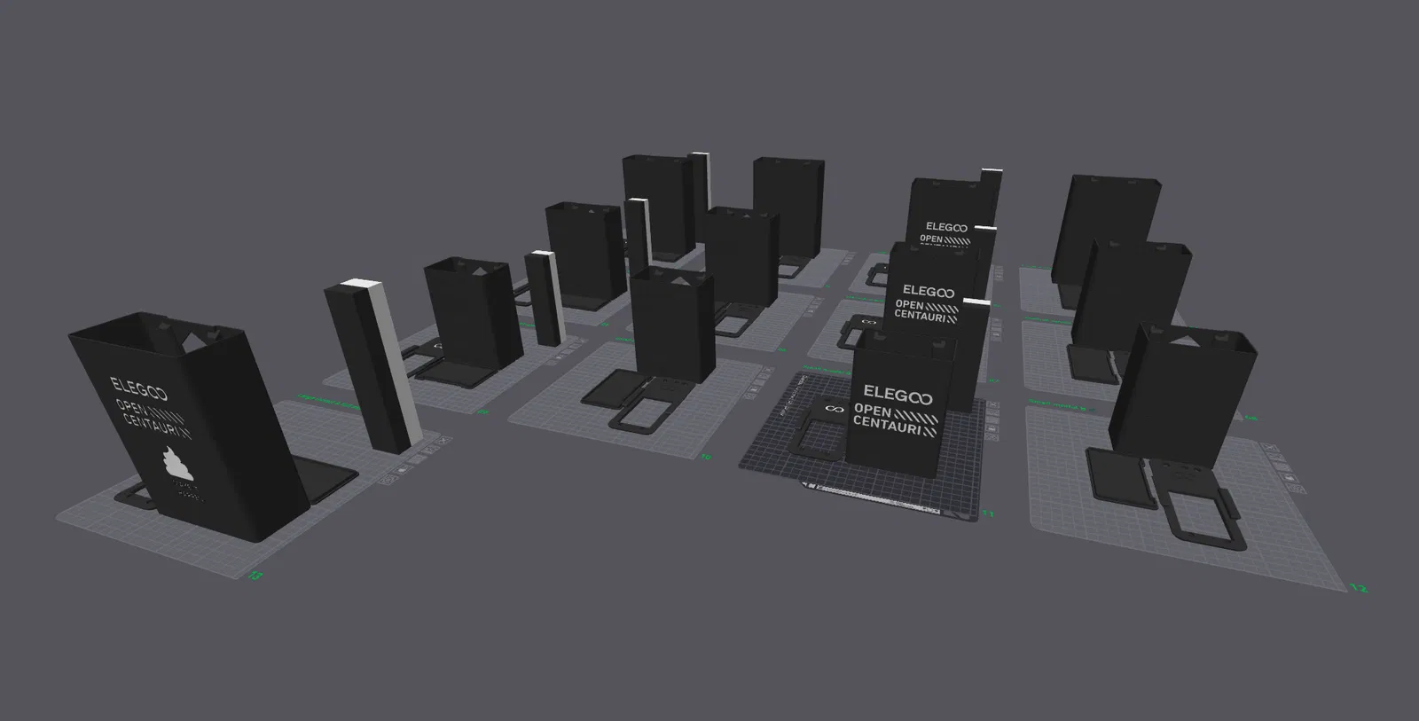 Poop chute dạng sealed cho Elegoo Centauri Carbon giúp seal kín hơn khi in vật liệu nhiệt độ cao và giảm ồn quạt. Holder bắt bằng ốc có sẵn; có file 3mf cho Bambu/Orca, nhiều plate tuỳ chọn size và màu (AMS).